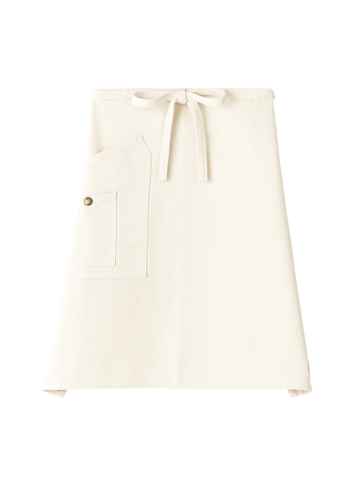 ダブルポケットがアクセントのミドルエプロンに、綿100%の風合いを生かした新素材がラインナップ。