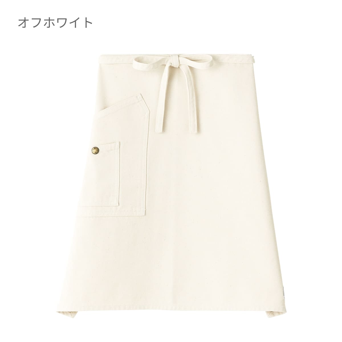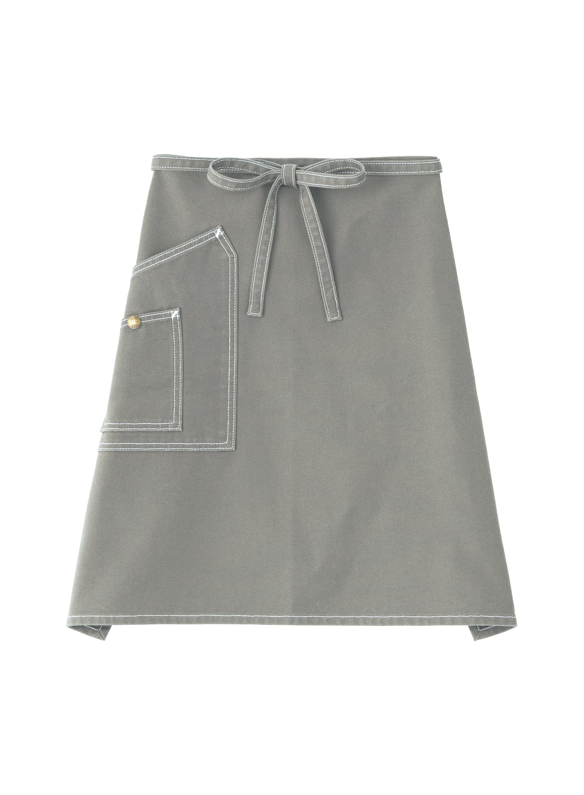 ダブルポケットがアクセントのミドルエプロンに、綿100%の風合いを生かした新素材がラインナップ。