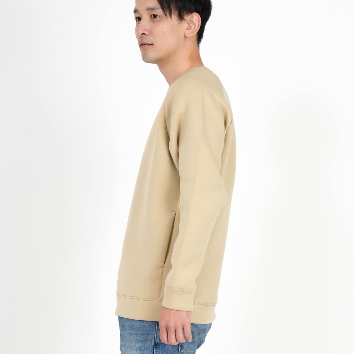 スウェットでは珍しい脇ポケット付きで汎用性の高いクルーネックトレーナー。