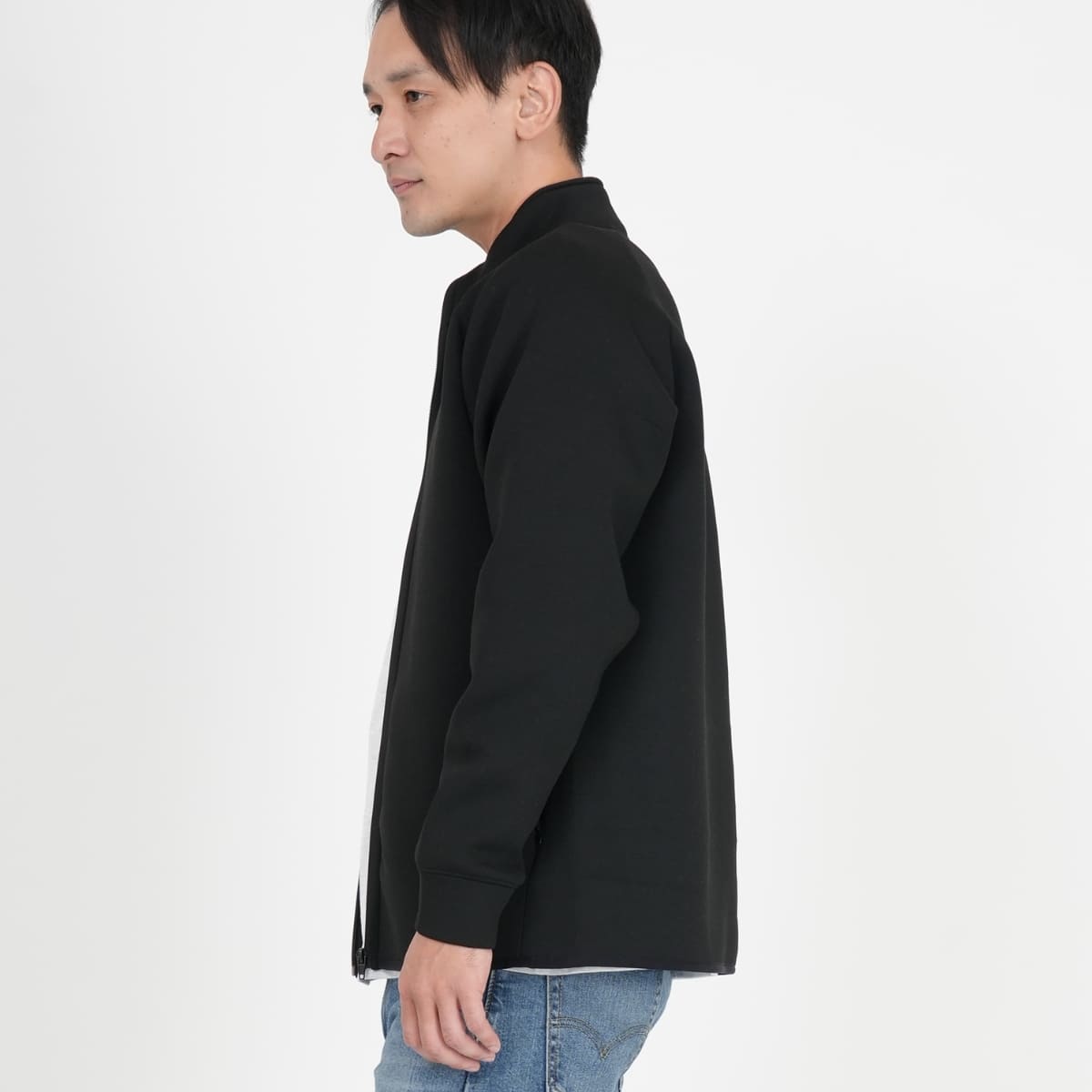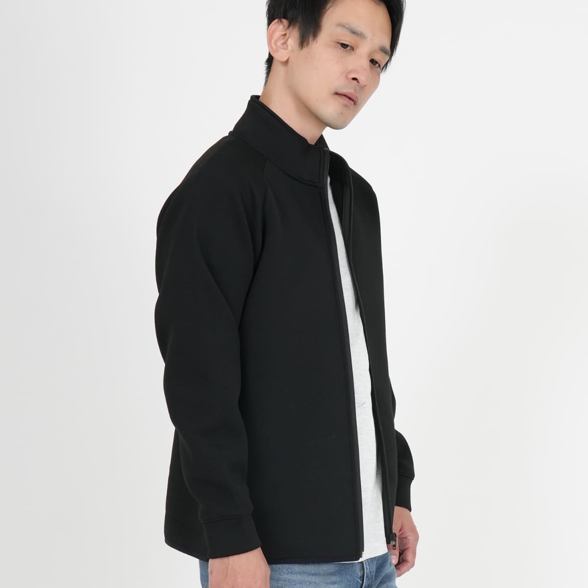 襟の立ち上がりが美しいトラックジャケット。こだわりの仕様でスタイリッシュな印象へ。