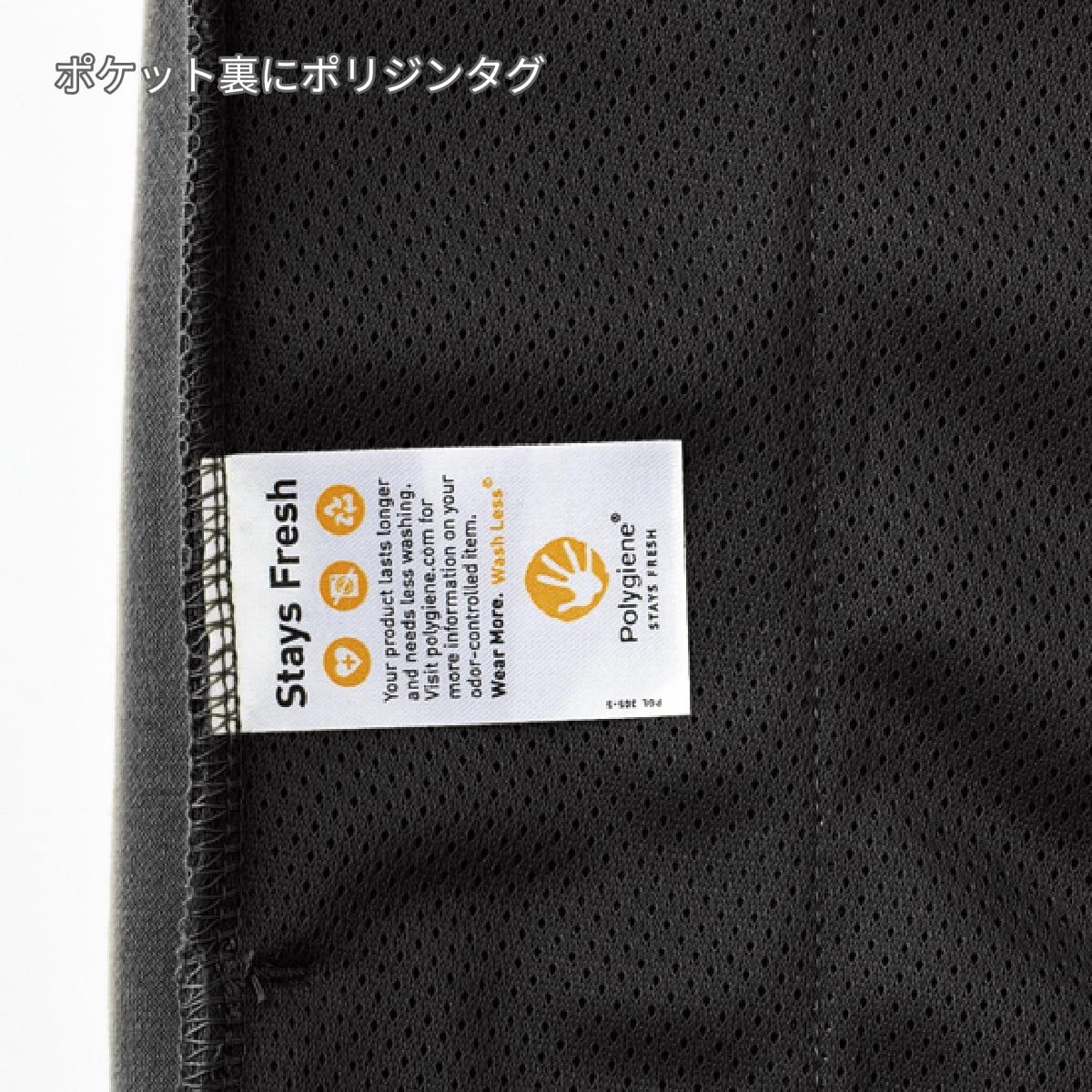 ポケットはメッシュ素材を使用し、蒸れにくさを実現。