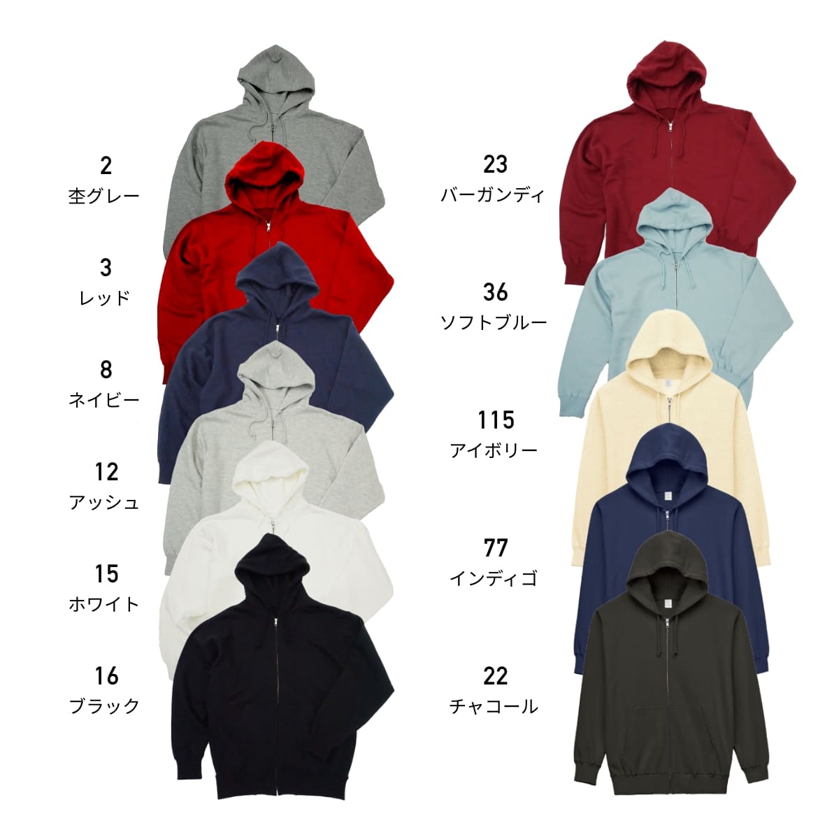 素材:綿100% (杢グレー:綿90%,ポリエステル10%) 裏毛