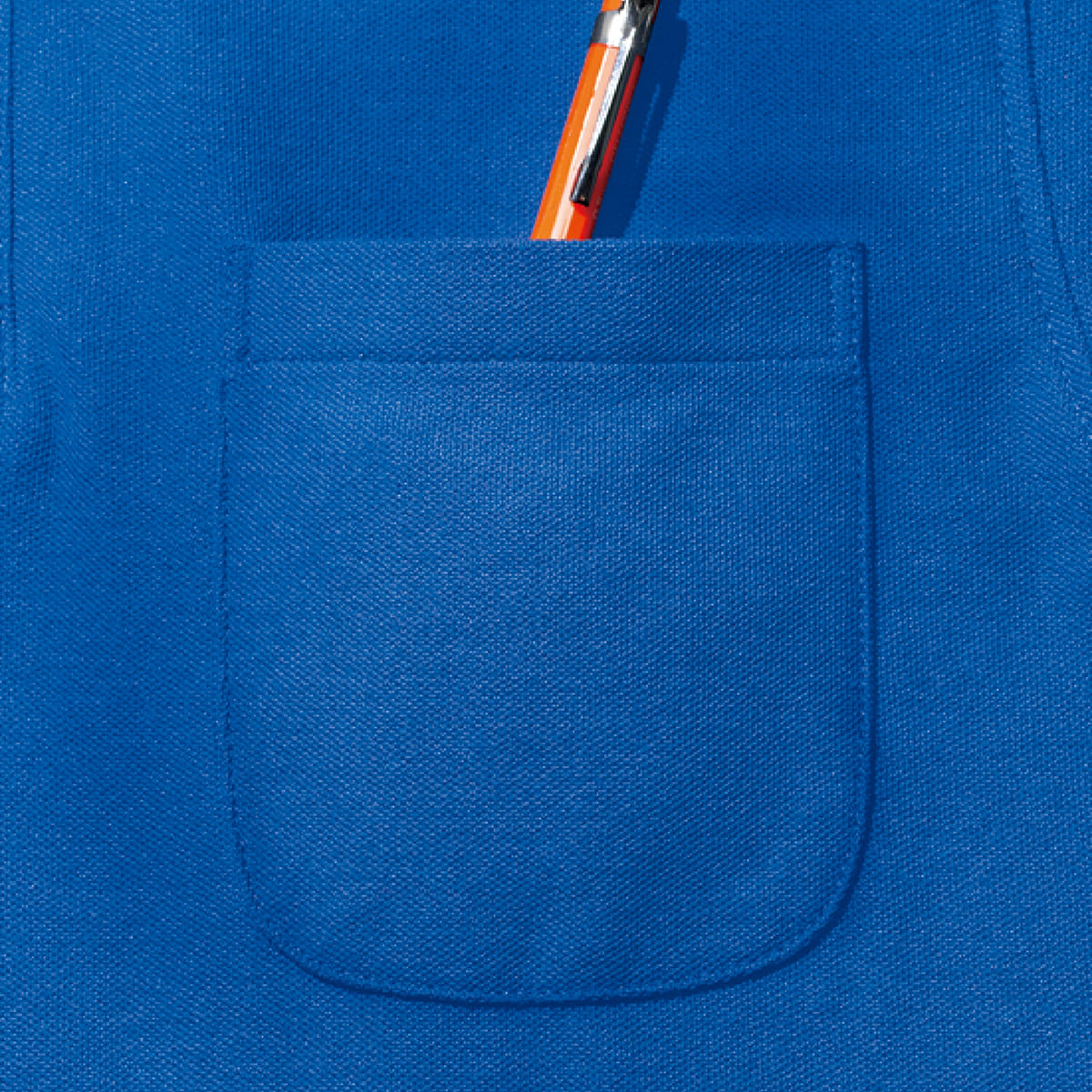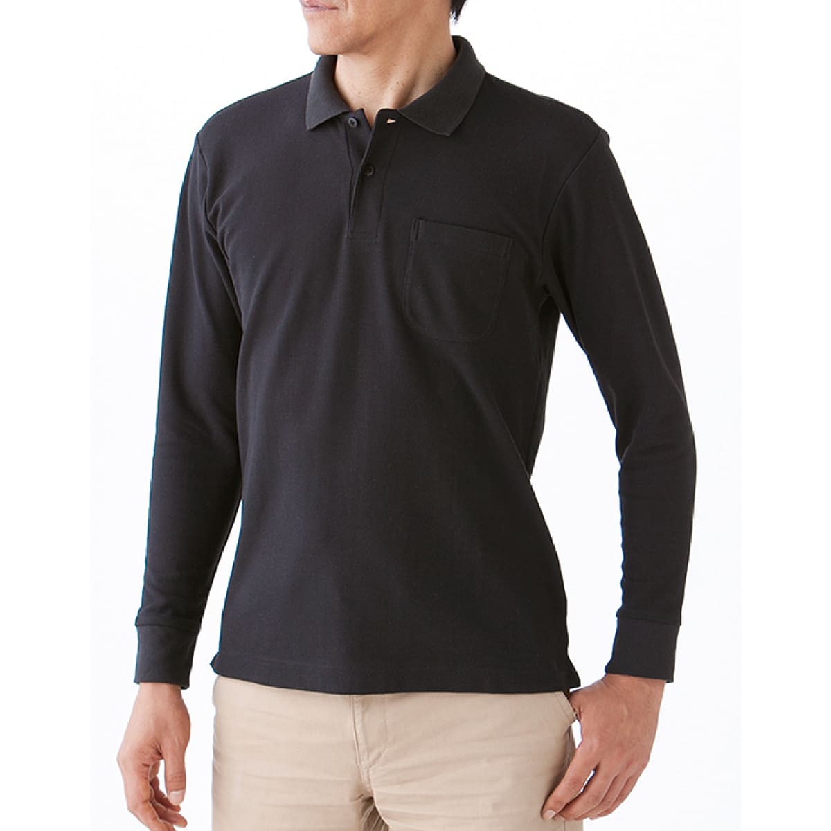 ワークシーンにも最適の長袖ポケット付きポロシャツ。