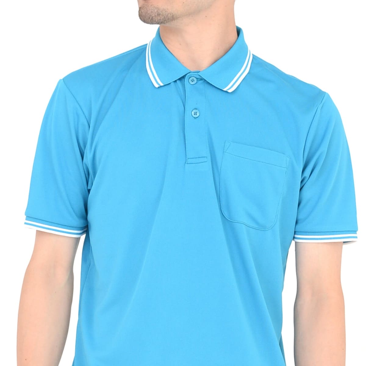 機能性素材のNEWスタンダード「ポリジンドライポロ」シリーズ。襟と袖のラインがアクセント。ポケット付で便利なドライポロシャツ。