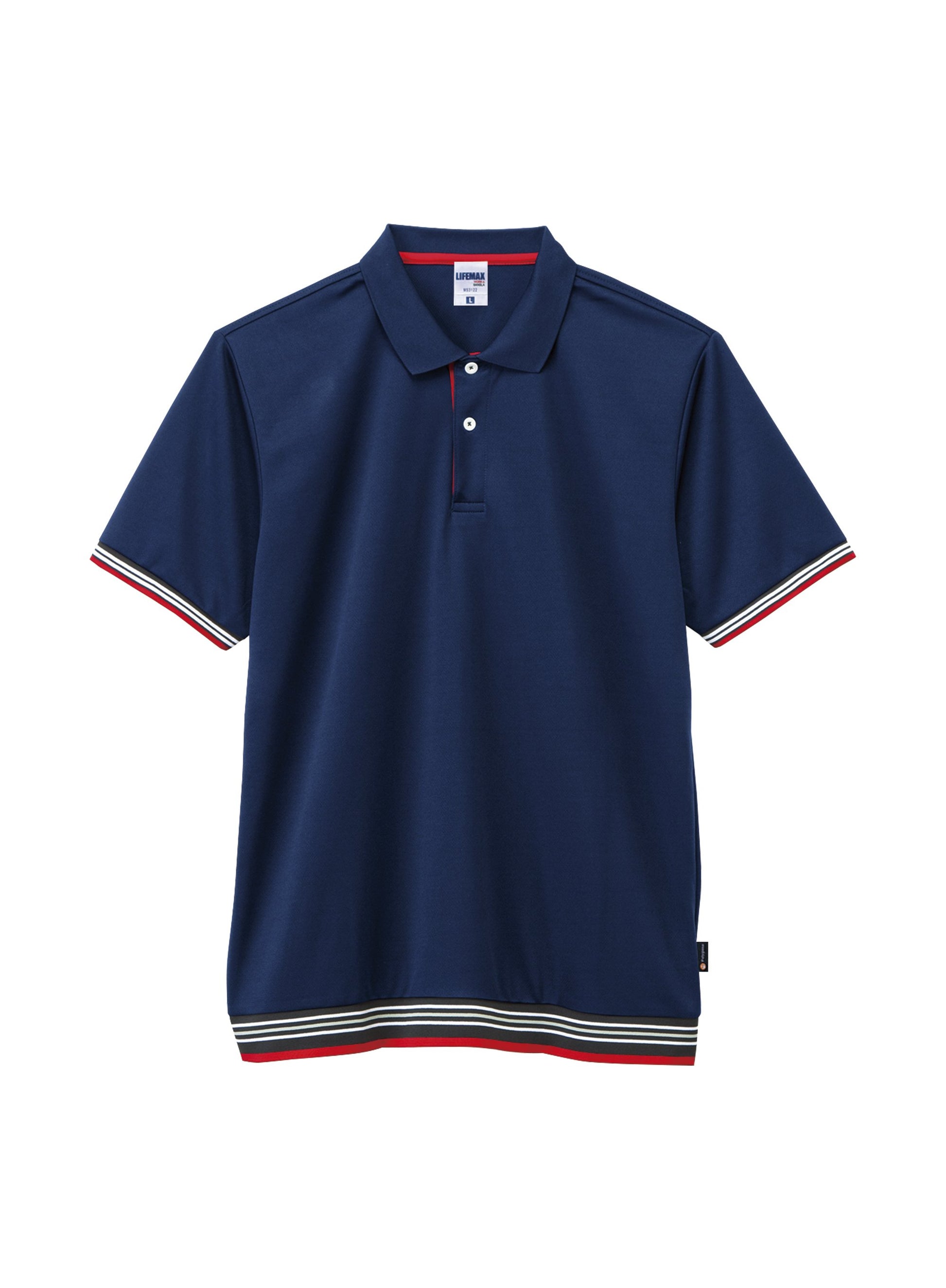 機能性素材のNEWスタンダード「ポリジンドライポロ」シリーズ。裾、前立て、袖のラインがアクセントのデザインポロシャツ。
