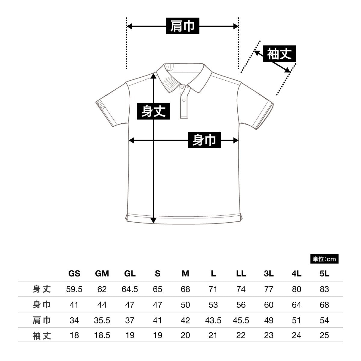 | 身丈 | 59.5 | 62 | 64.5 | 65 | 68 | 71 | 74 | 77 | 80 | 83 |
