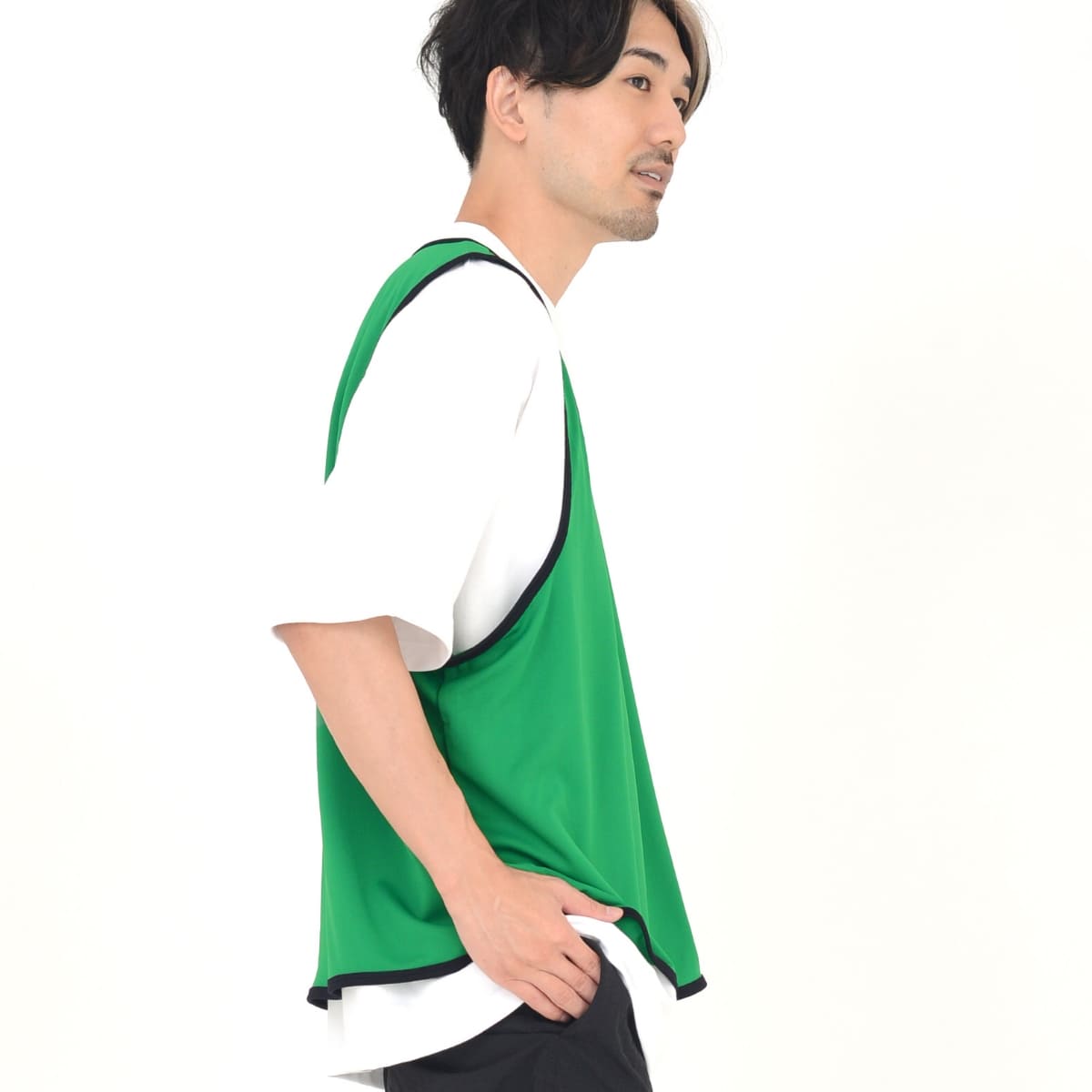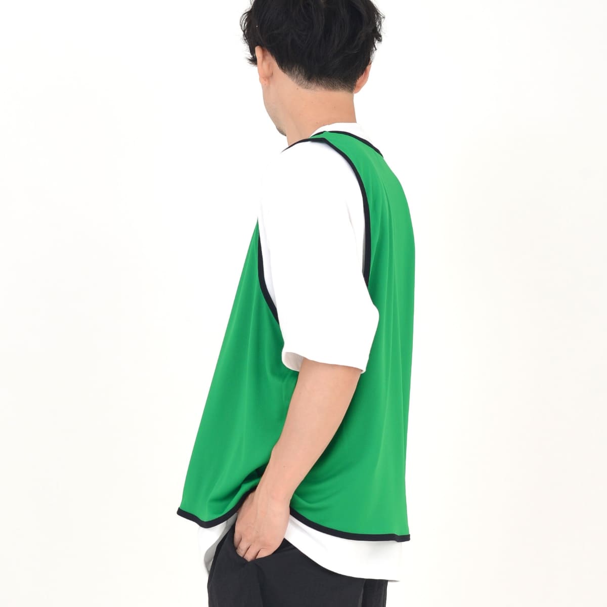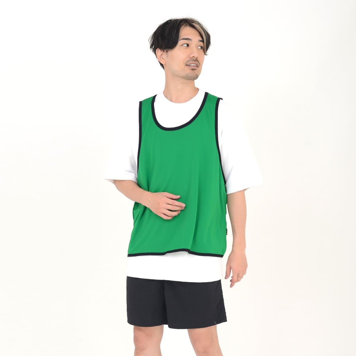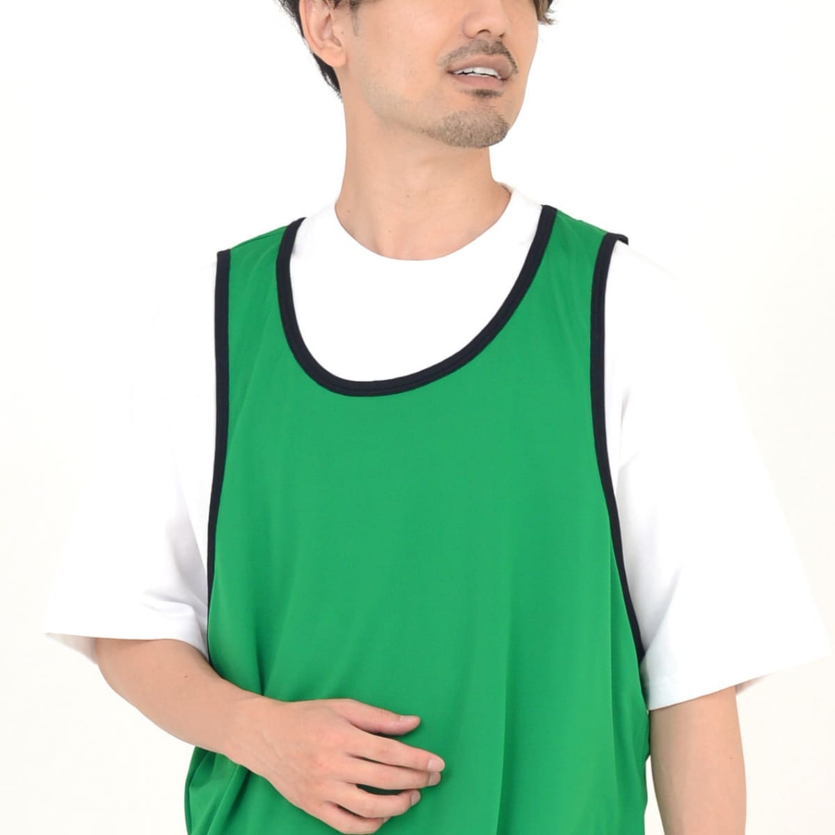 屋内外に問わず、ビブス着用シーンではポリジンドライ素材が快適。 ニオイ、暑さ、日差し対策機能が標準装備。