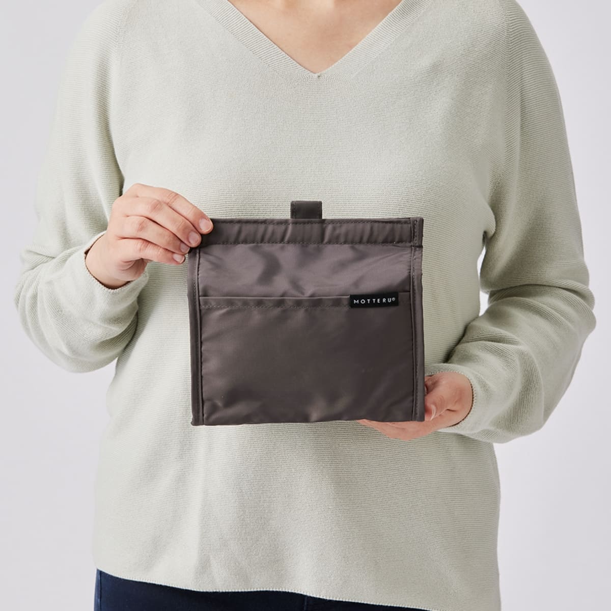 持ち手がないので、私は少し大きめのカバンの底に