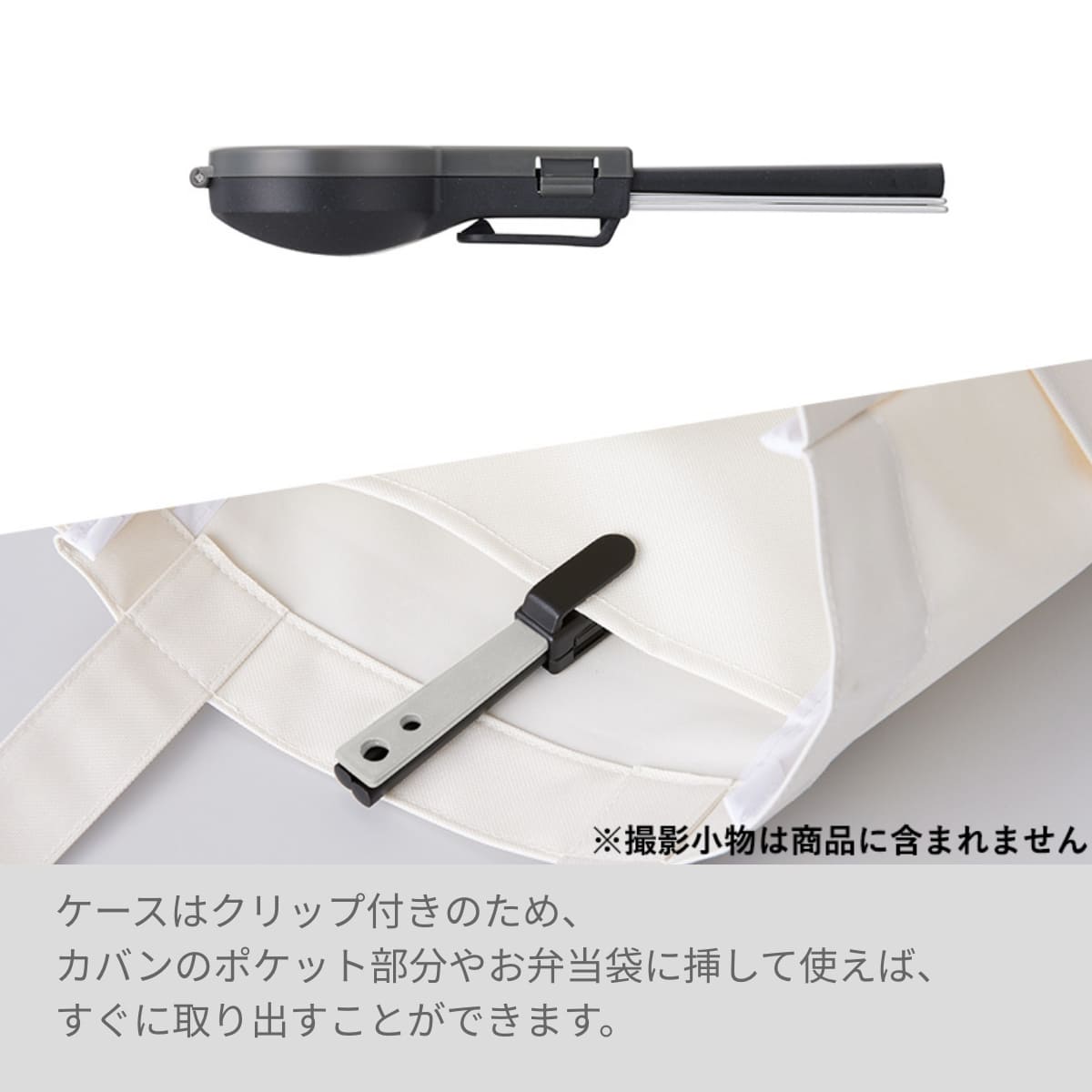 続きまして、お箸の上にフォークを重ねてケースにイン! ↓