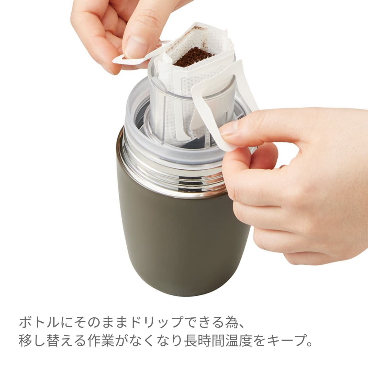 立ち上げ式のボトルにそのままドリップできるので、ドリップパックが浸る心配がありません。