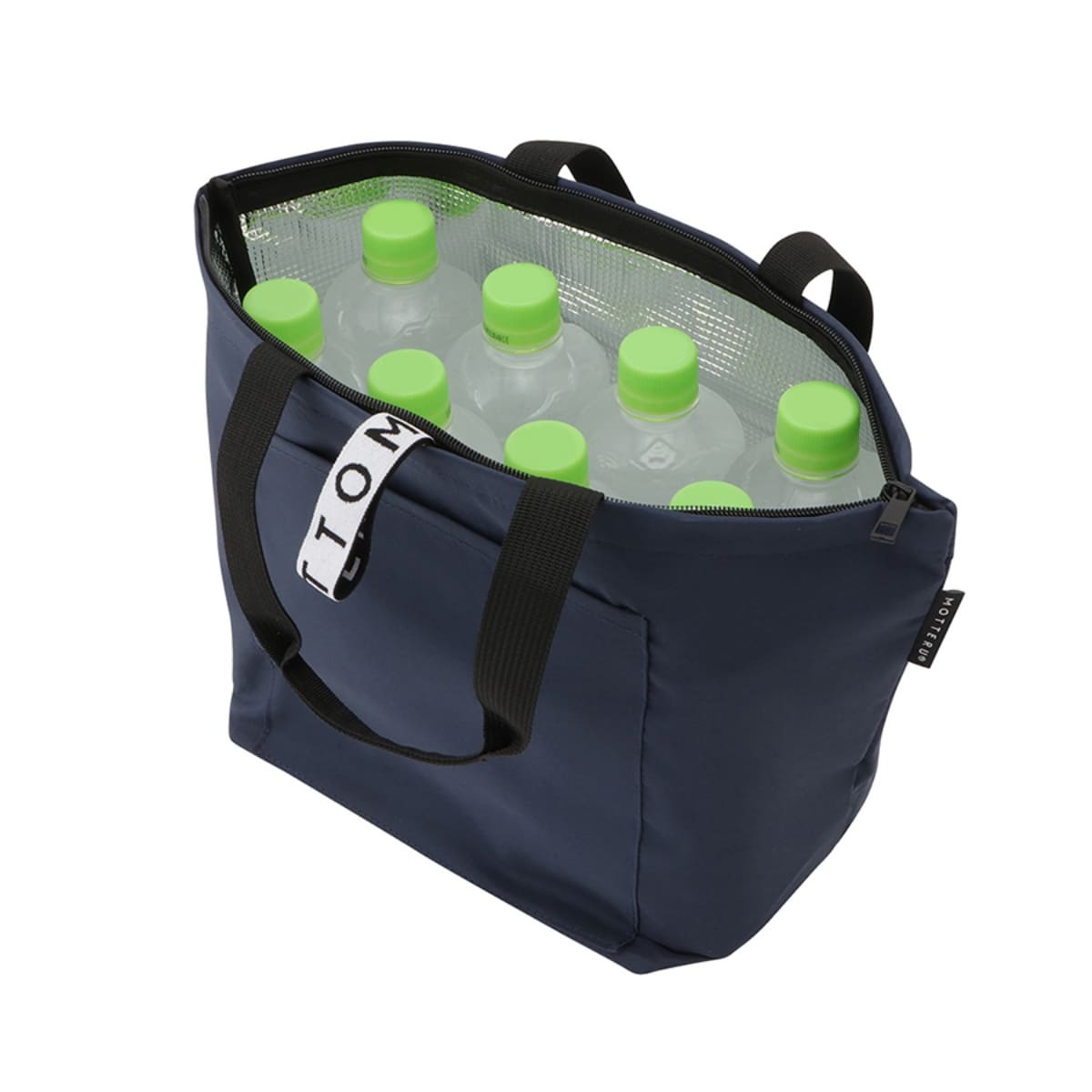 回収されたペットボトルなどから再生された生地を使用した環境にやさしいクーラーバッグです。