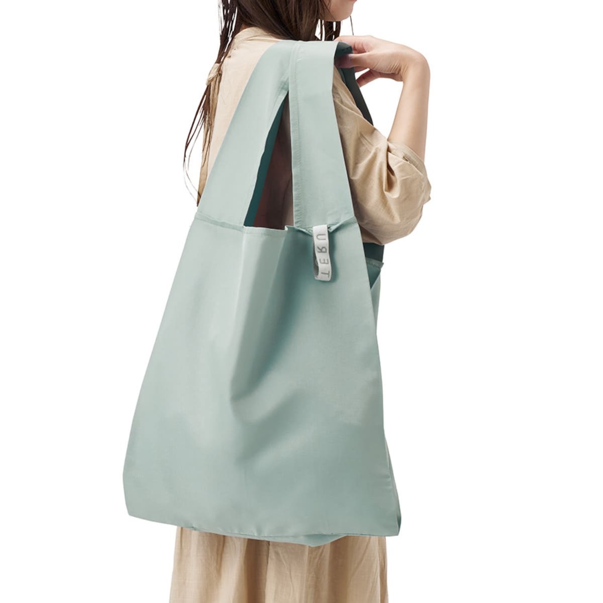 性別、年齢問わず誰からでも受け入れられるシンプルなデザインに、トレンドのくすみカラーの本体がおしゃれなエコバッグです。