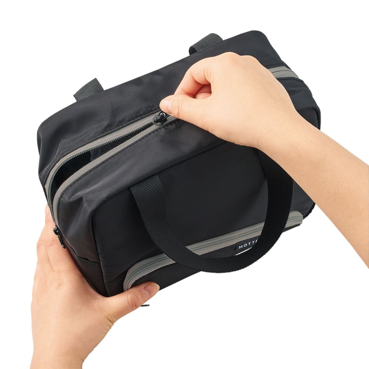 お弁当箱のほか、500mlのペットボトルが縦にも横にも収納ができ、バッグ1つですっきりとまとまります。