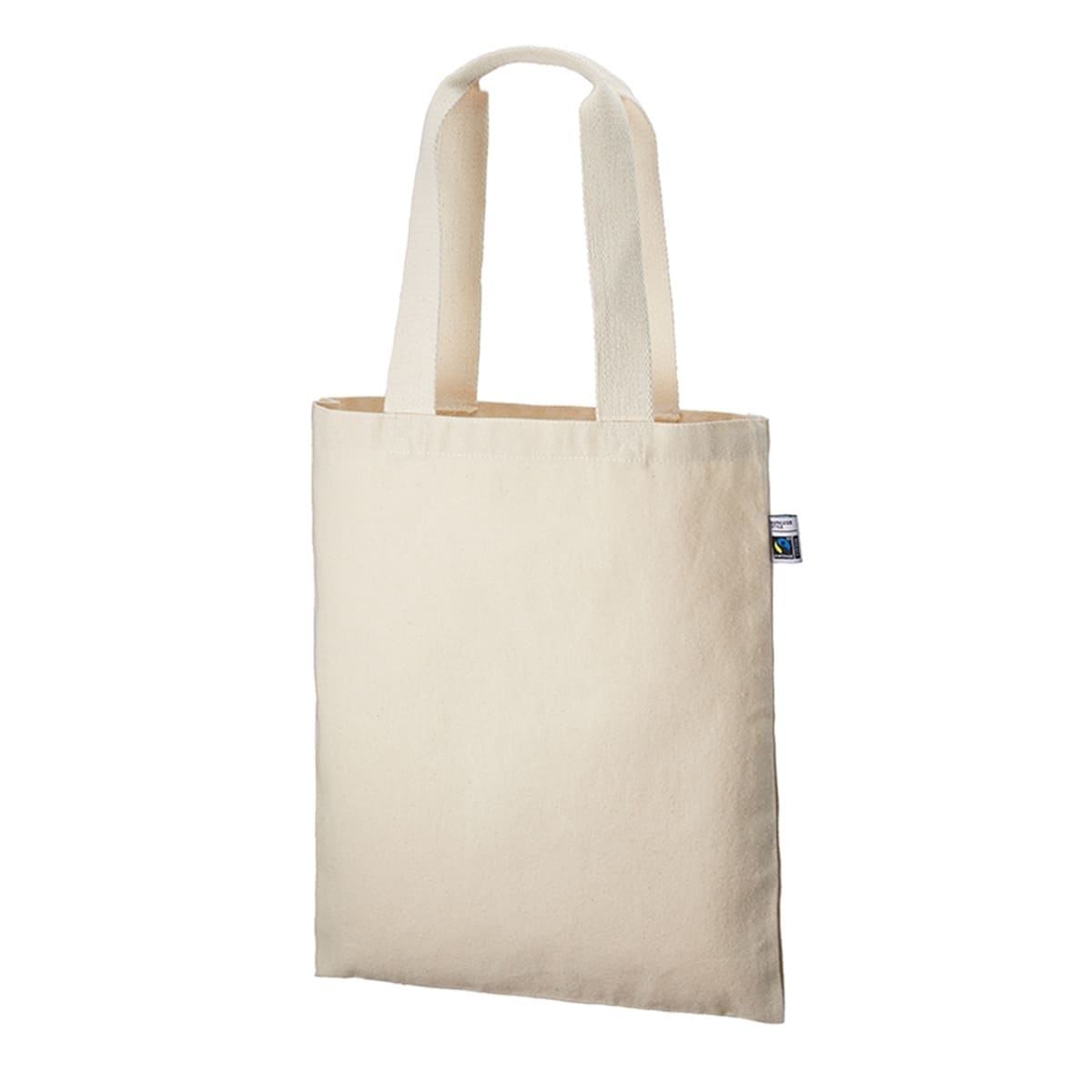 フェアトレードコットンを使用したフラットトートです。A4資料が入るフラット型で会社案内入れなどにおすすめです。