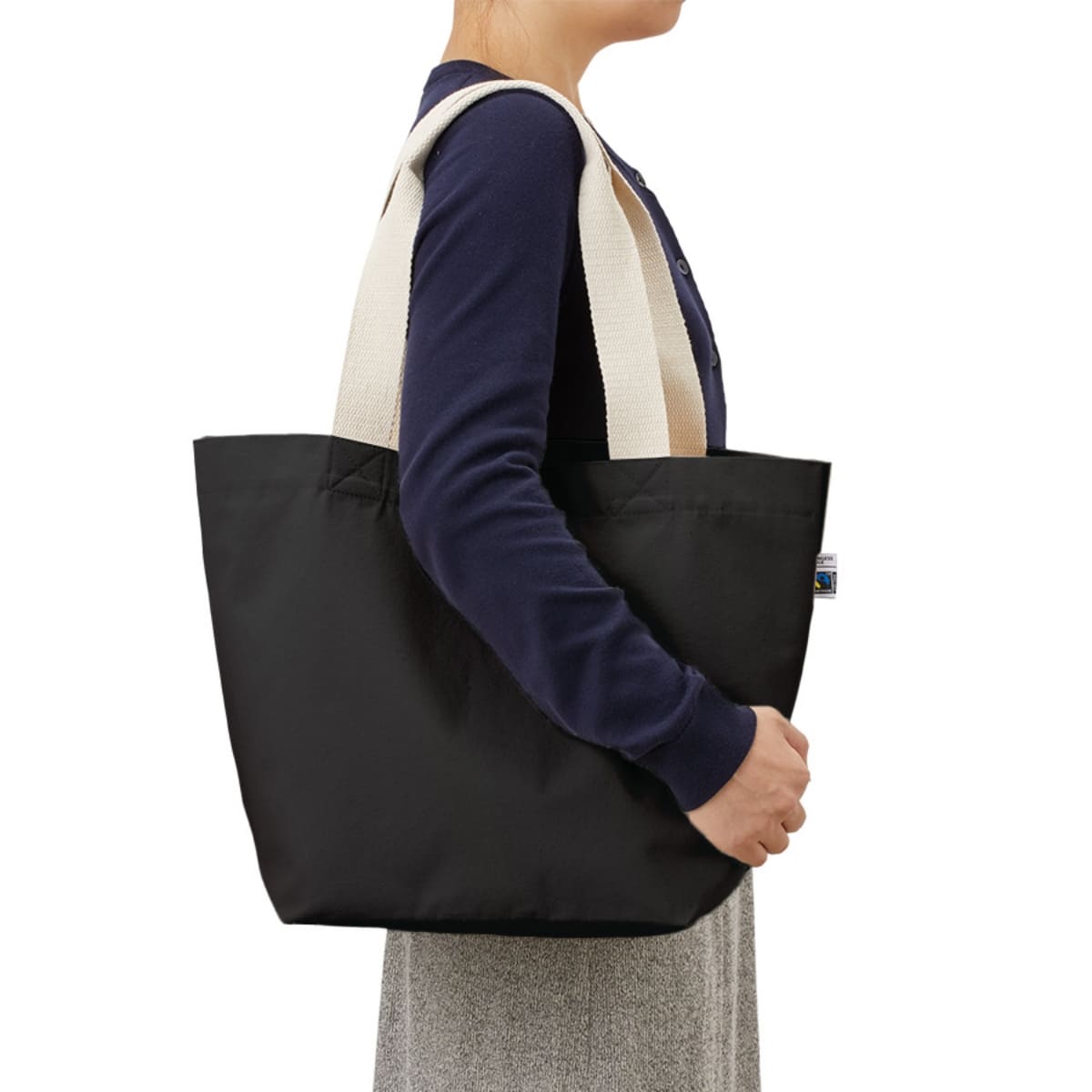 バッグには国際フェアトレード認証ラベルのタグがついています。