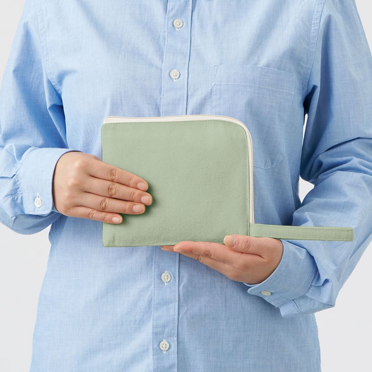 しっかりとしたキャンパス生地のL字ファスナーポーチ