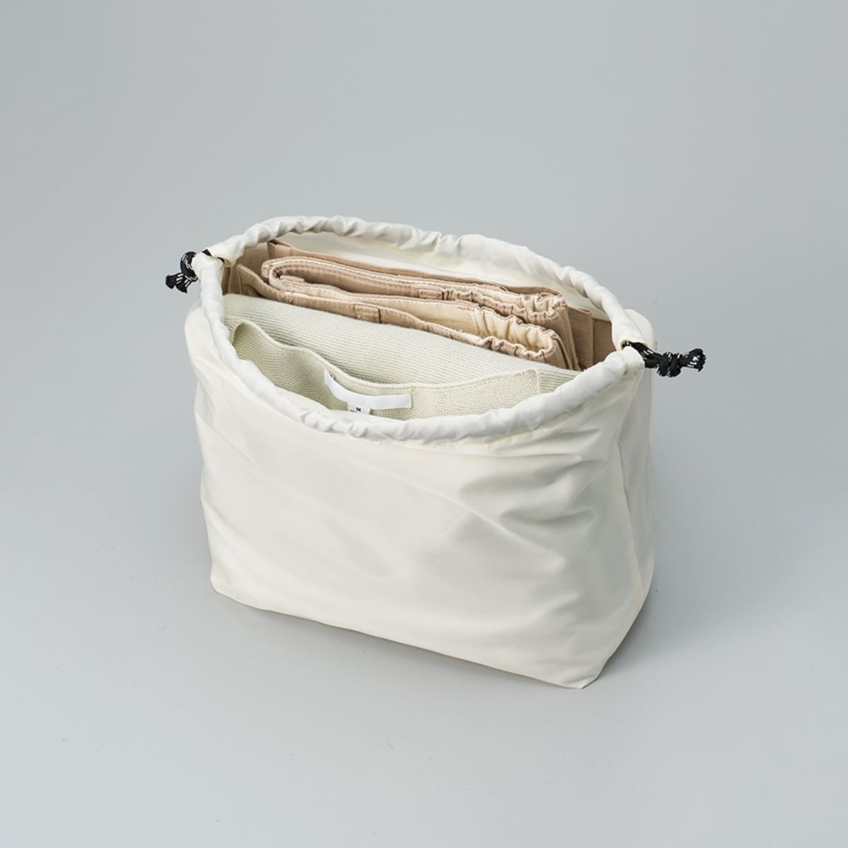 上質な光沢感としなやかでさらっとした手触りが特徴のファインライトポリを使用した巾着