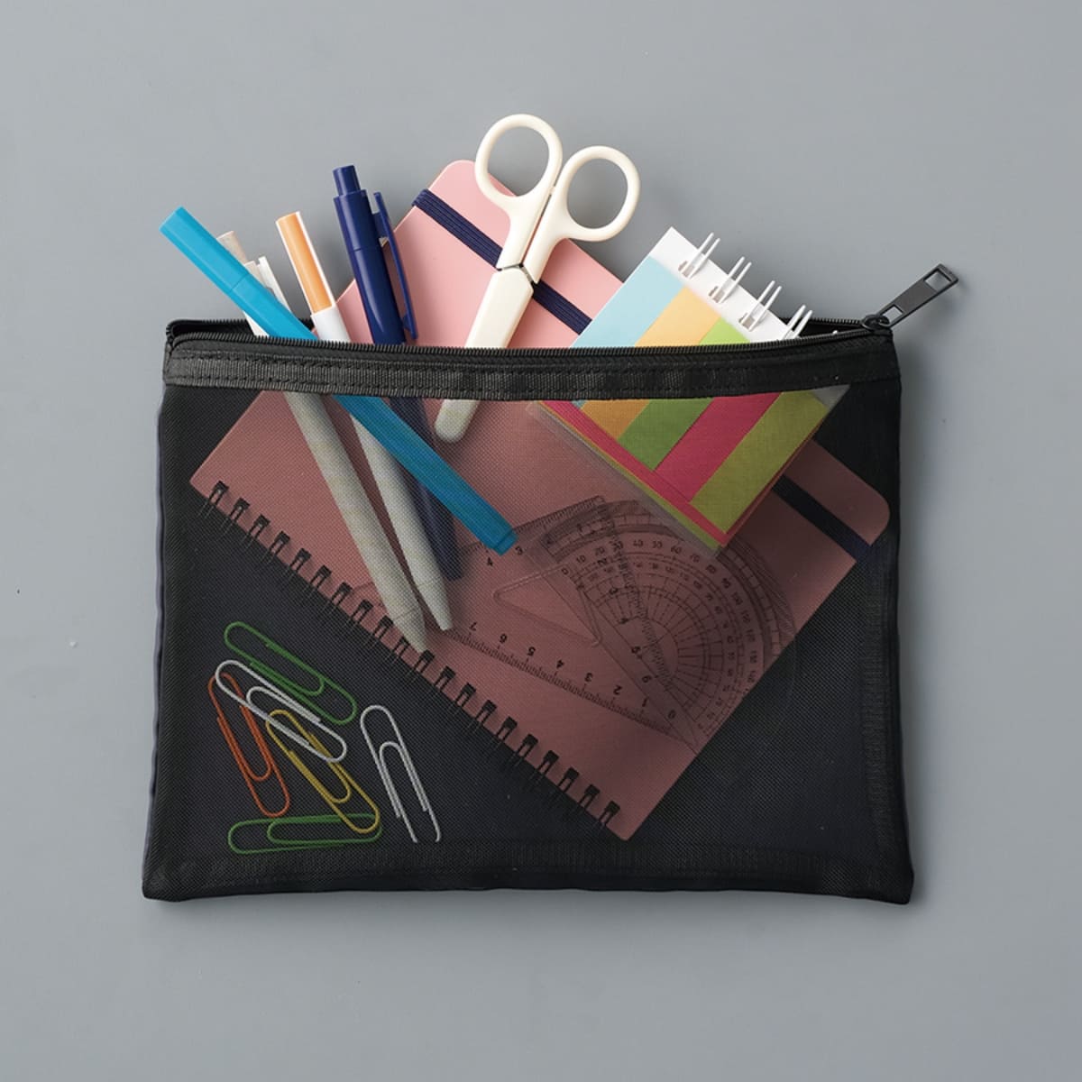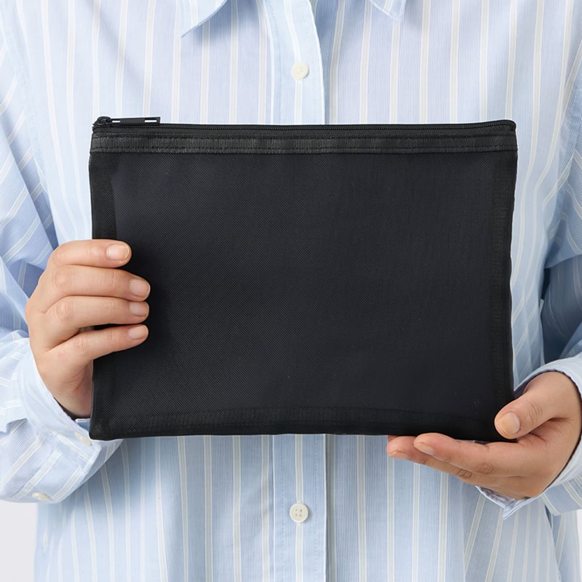 フラットタイプですっきりと使えるメッシュポーチ