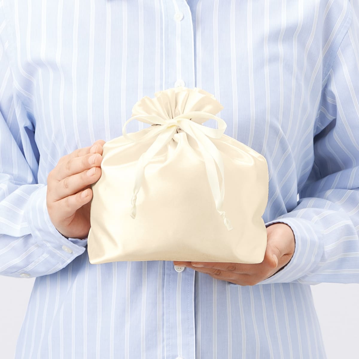 サテンフリルポーチ巾着 | ノベルティ(小物) | 1枚 | TP-0033 | ピンクベージュ