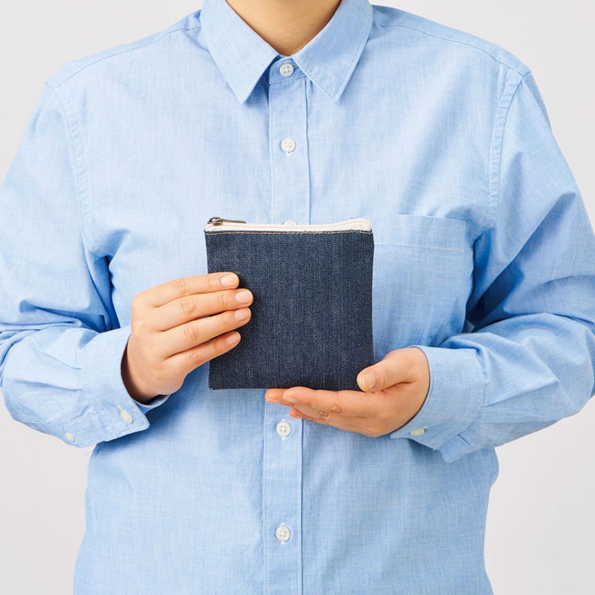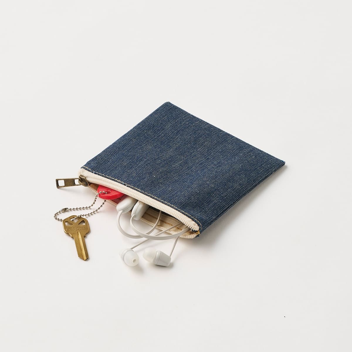 フラットタイプで使いやすい、おしゃれな印象のデニムポーチ
