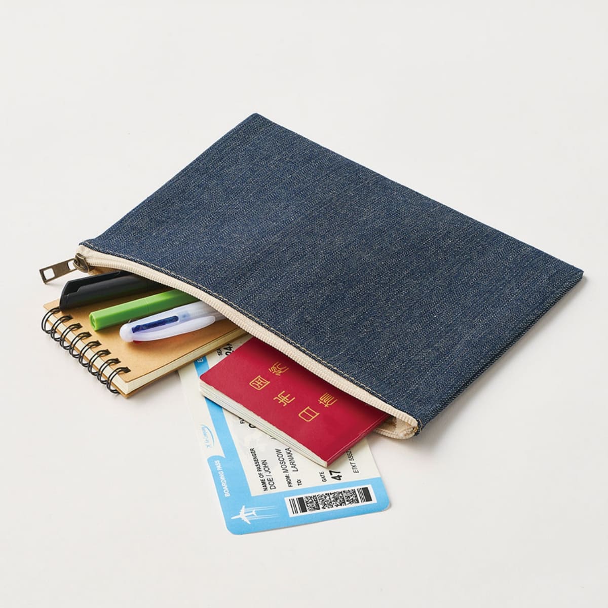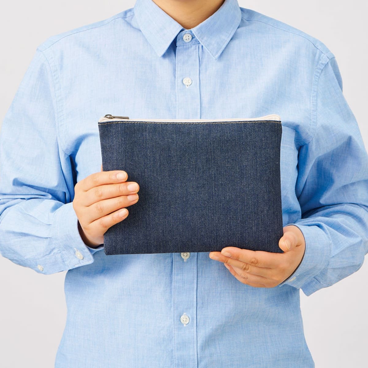 フラットタイプで使いやすい、おしゃれな印象のデニムポーチ