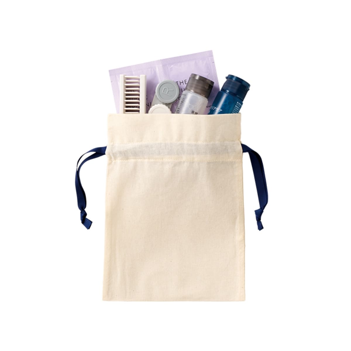 7色展開のカラーリボンがポイントのコットン巾着