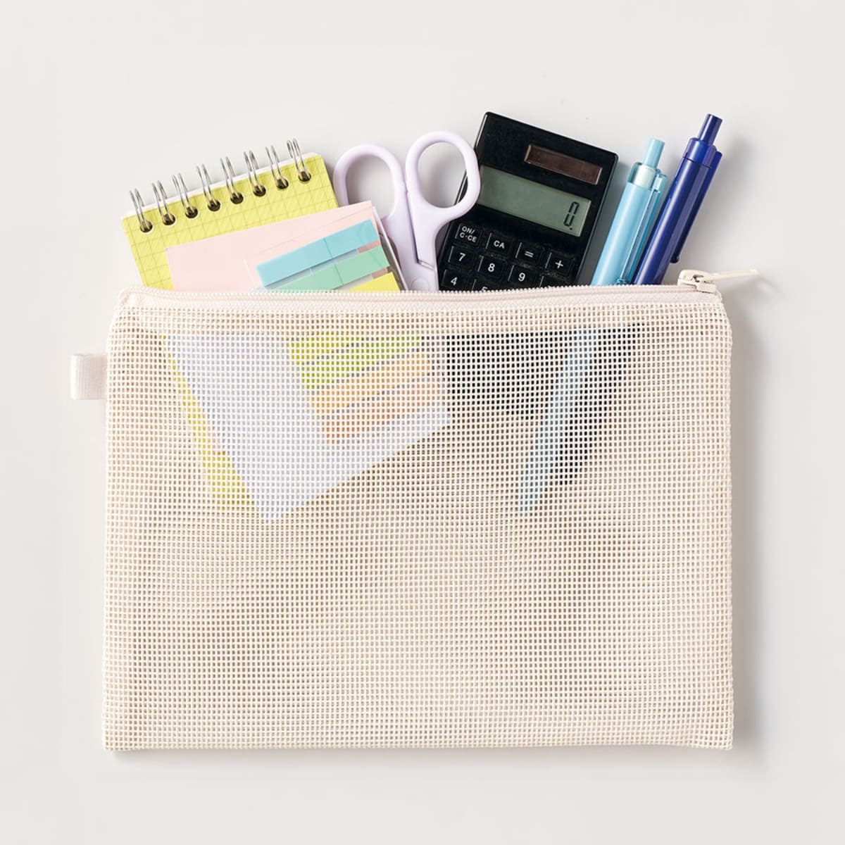透け感のあるメッシュ素材のフラットポーチ