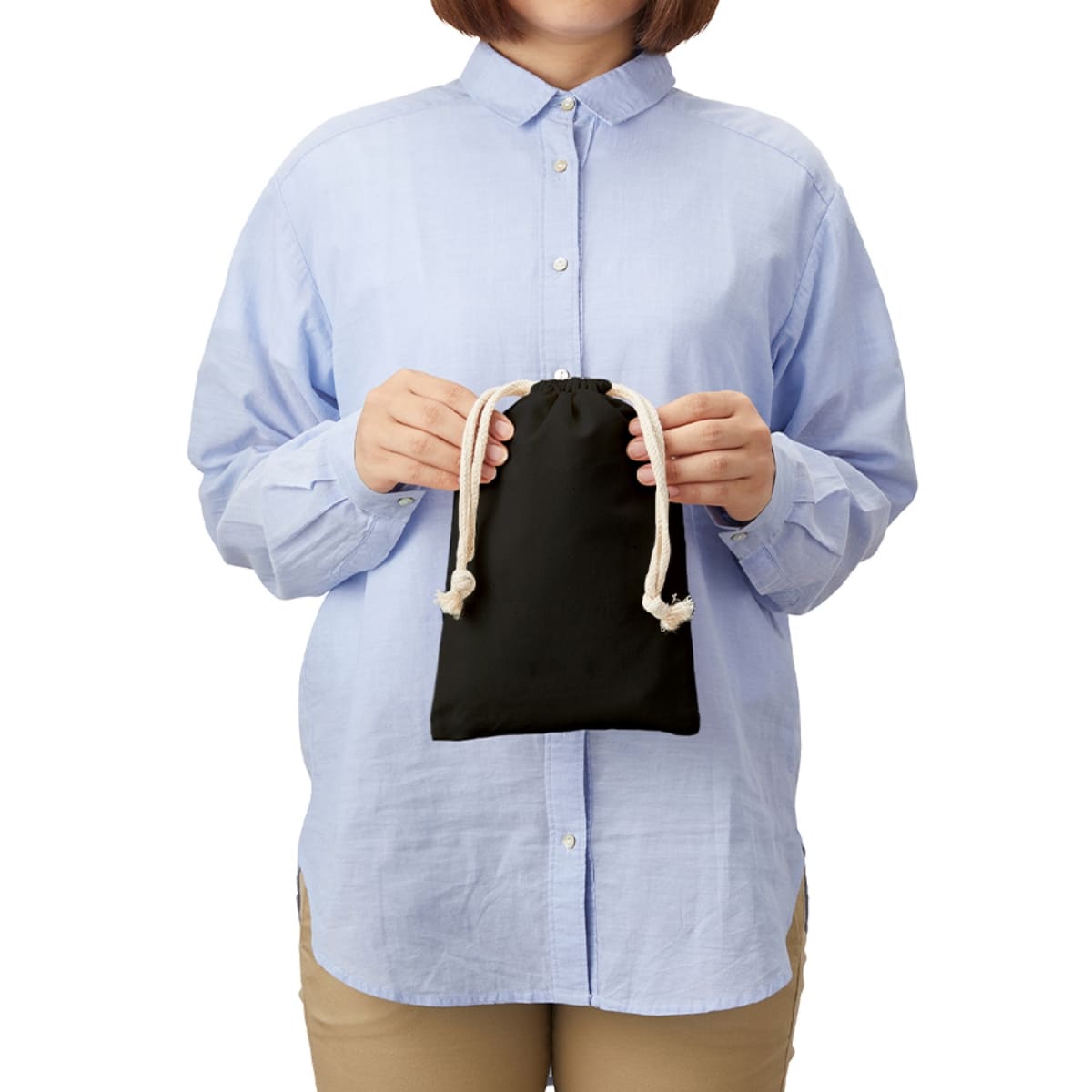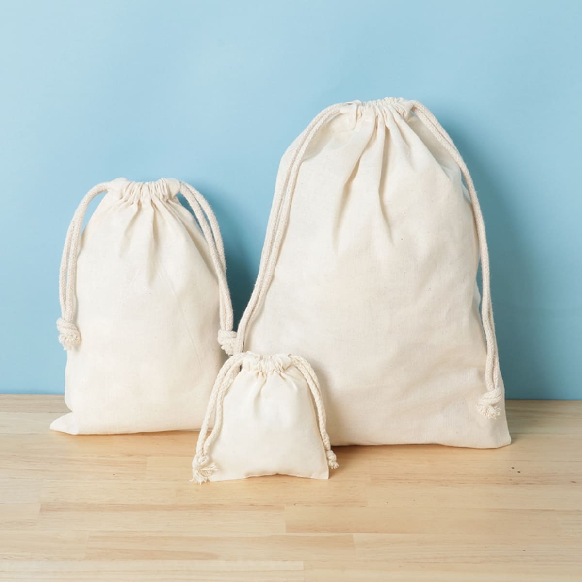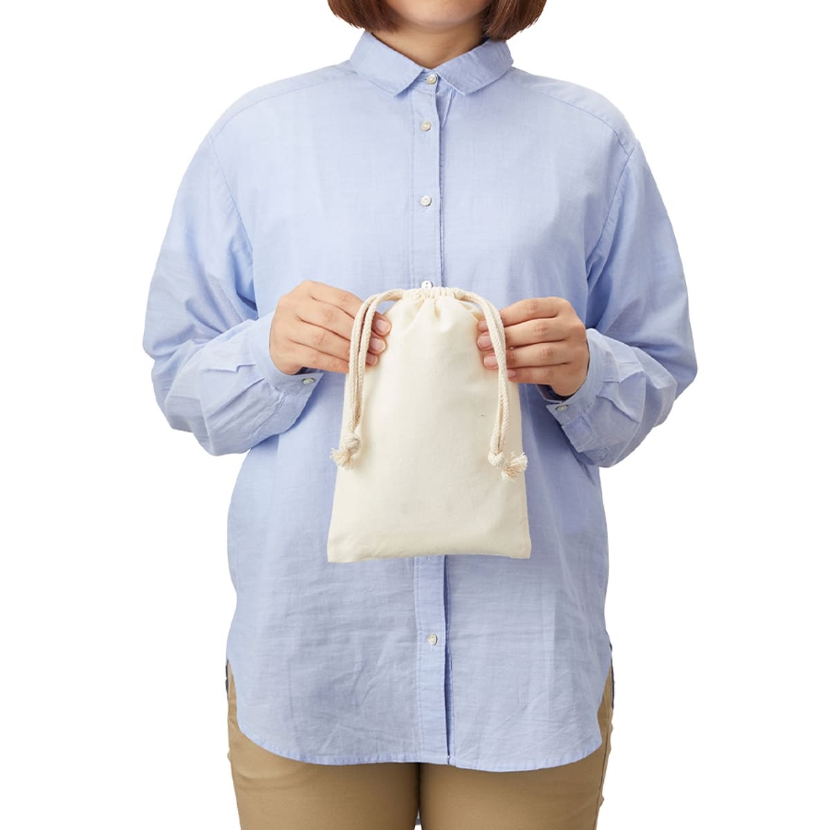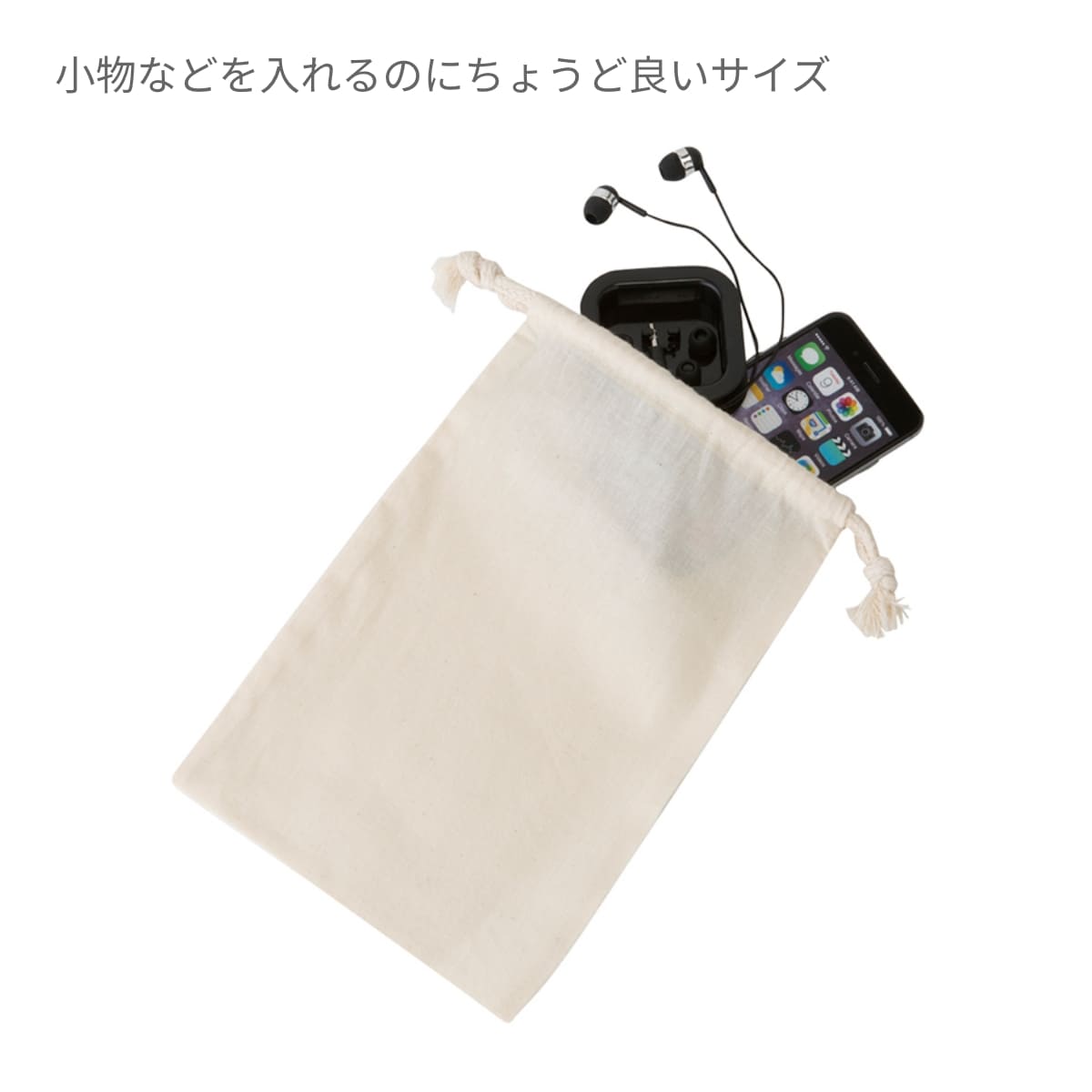 商品パッケージやギフト包装としてもご好評をいただいている使い勝手の良いコットン巾着です。