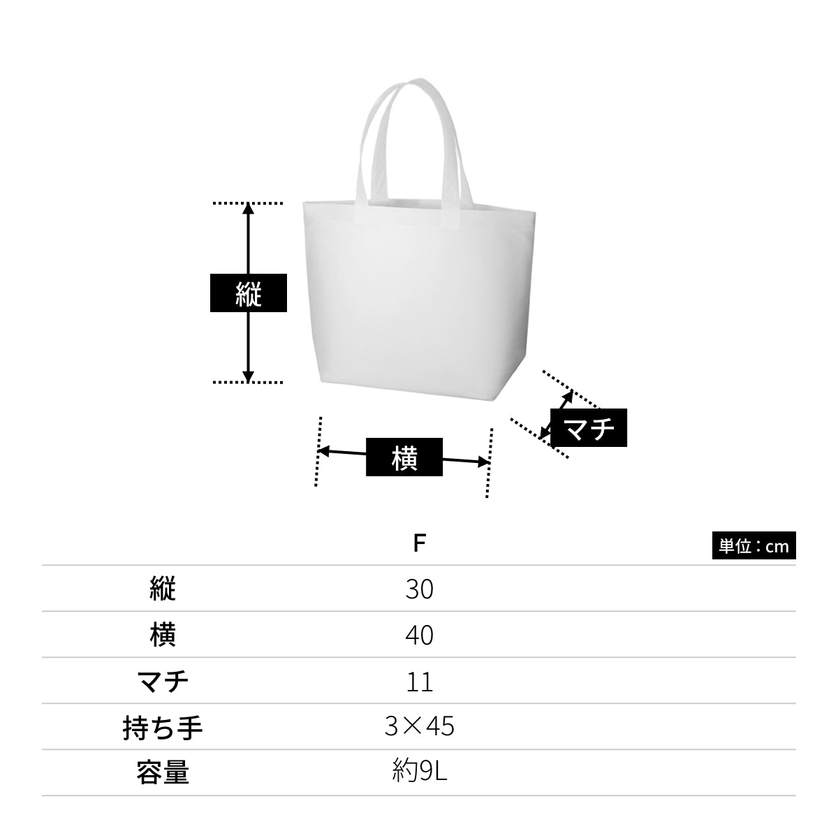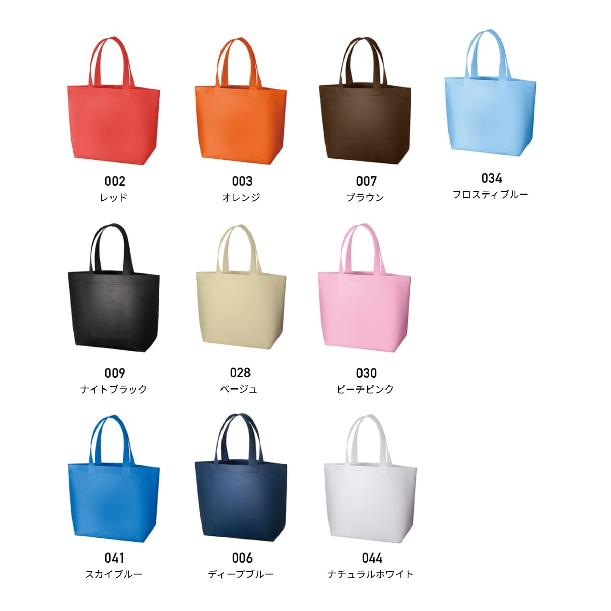 選べる11色展開が嬉しい底マチ付の不織布のトートバッグです。A4サイズもゆとりを持って入れることができます。また不織布は熱圧着ではなく縫製にて作られているため丈夫で長くお使いいただけるのもうれしいポイントです。展示会などの配り物トートやアパレル用ショッパーなど幅広い場面で活躍するアイテムです。