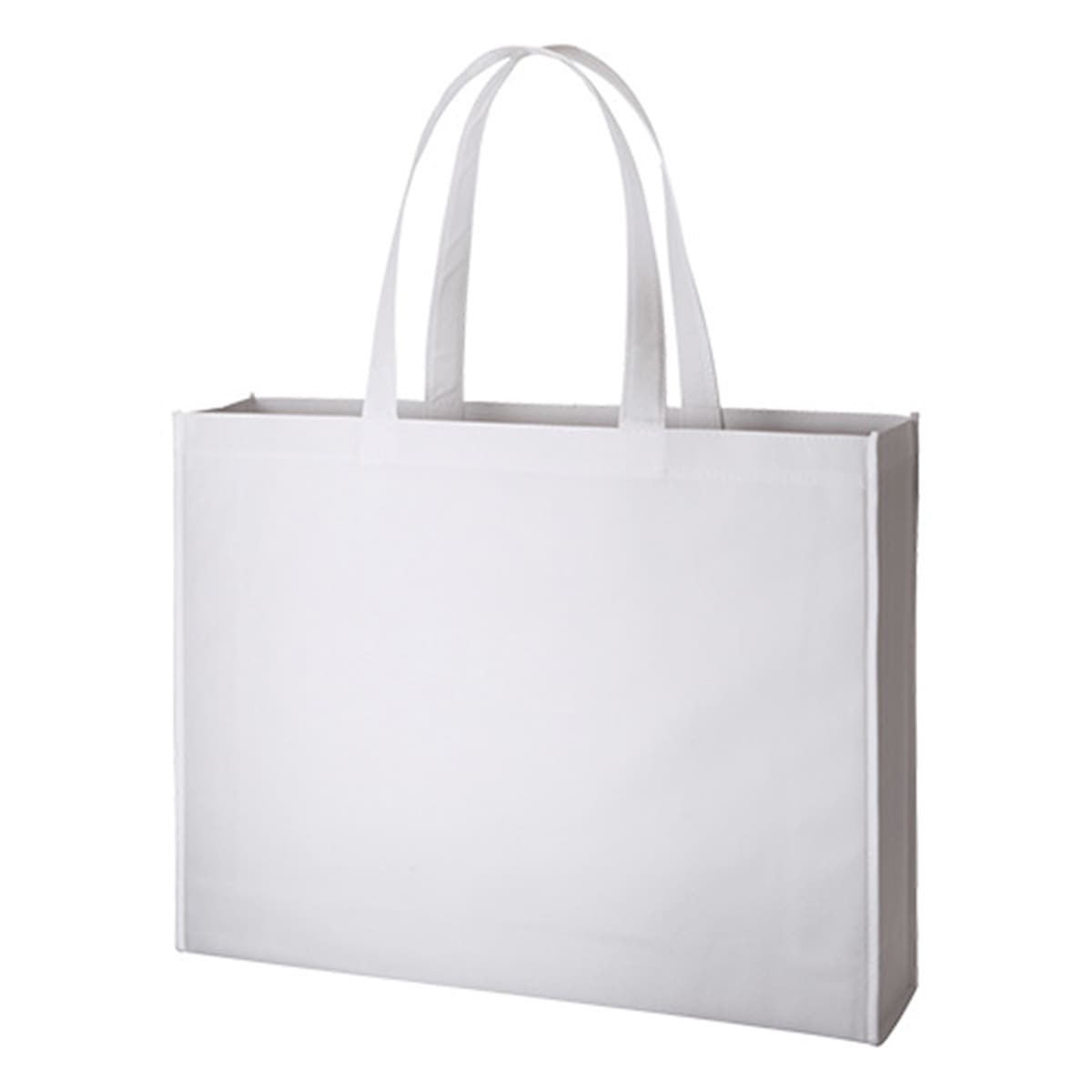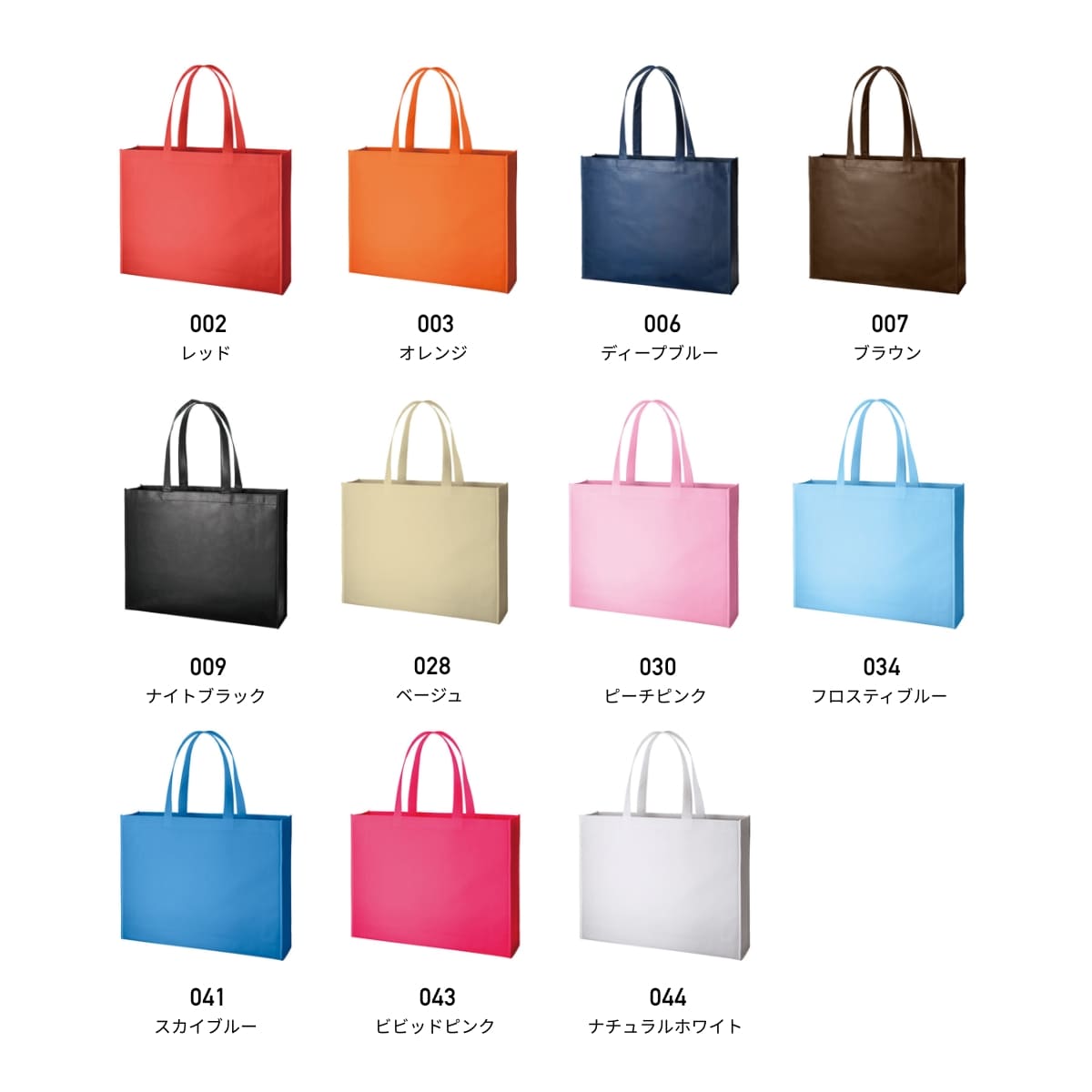 大容量の不織布のトートバッグです。大きな印刷範囲はイベント販促用バッグに最適です。展示会の配り物トートとして配布すれば、会場内でのPR効果バツグンです!