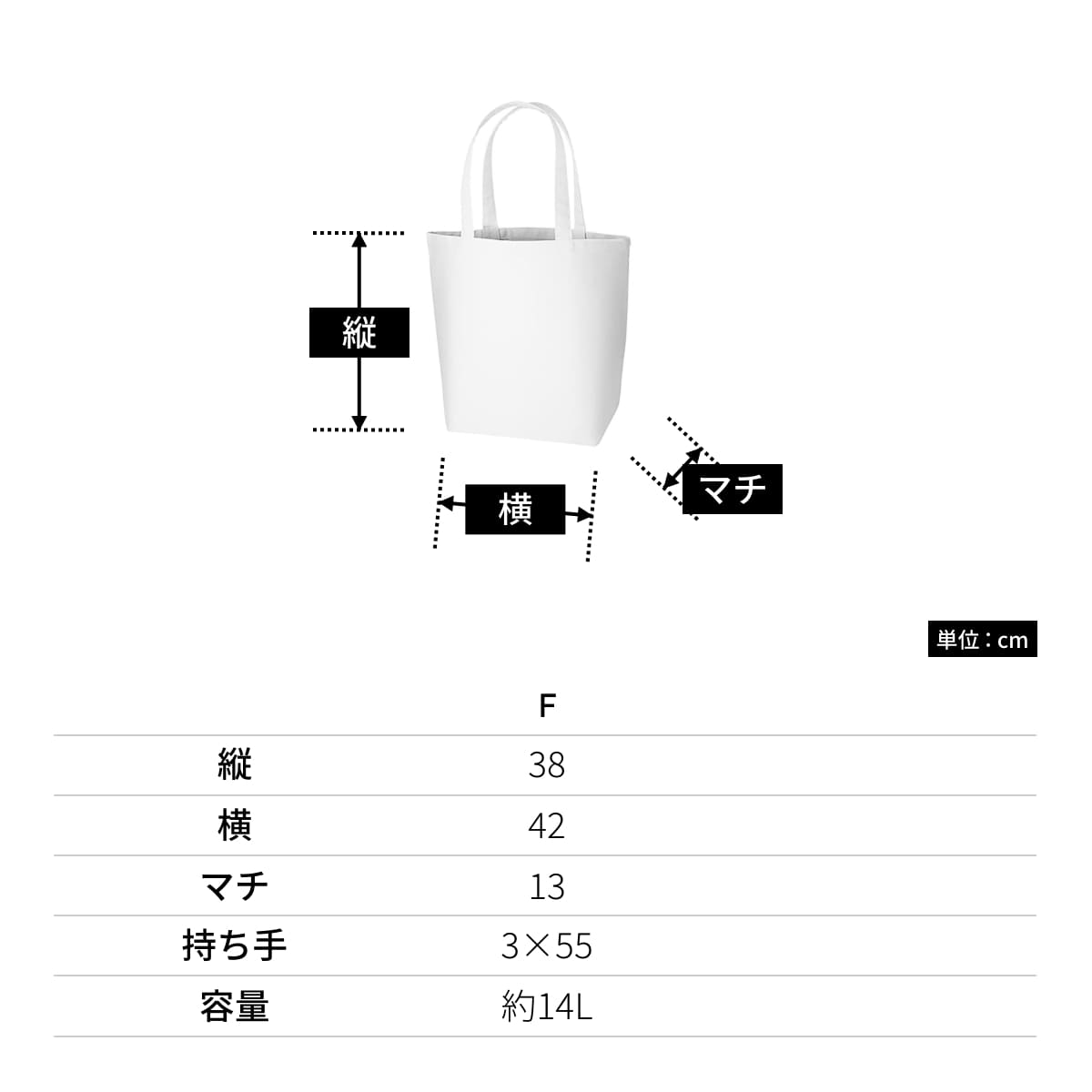 横に広いタイプでたっぷり入るサイズ感なので、普段使いとして荷物が多い外出時の強い味方です。加工も単色からフルカラーまで対応しており、お好みのデザインでオリジナルトートバッグを作成出来ます。販路としても幅広いものがありノベルティや物販など、幅広い用途にご利用いただけます。