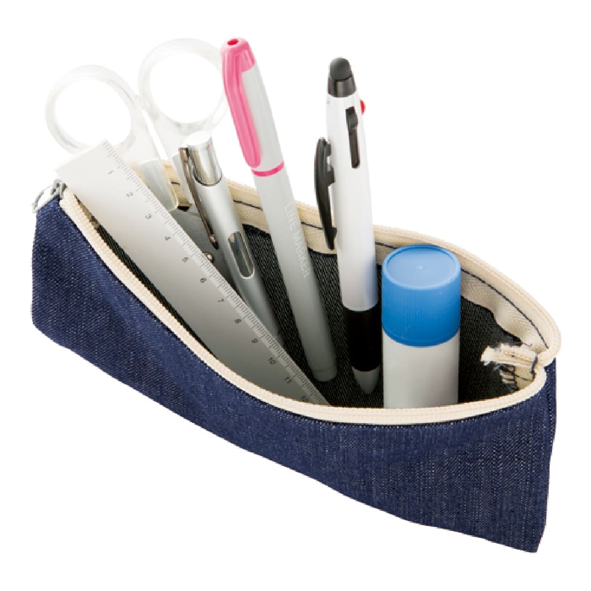 マルチに使えるスマートなデニムのフラットポーチです。メイク道具やステーショナリー入れとしても。