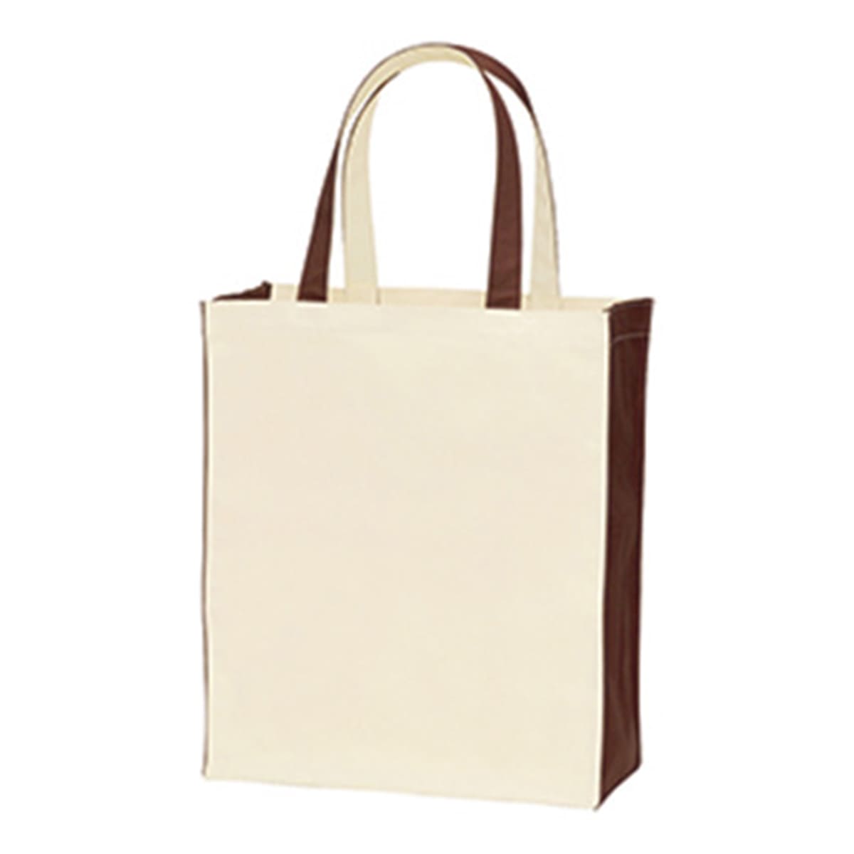 しっかり肩かけのマチ付のポリエステルバッグなので、厚みのある書類も安心収容可能です。展示会用の配り物トートバッグや、オープンキャンバス用のトートバッグなどでも活躍が期待できます。