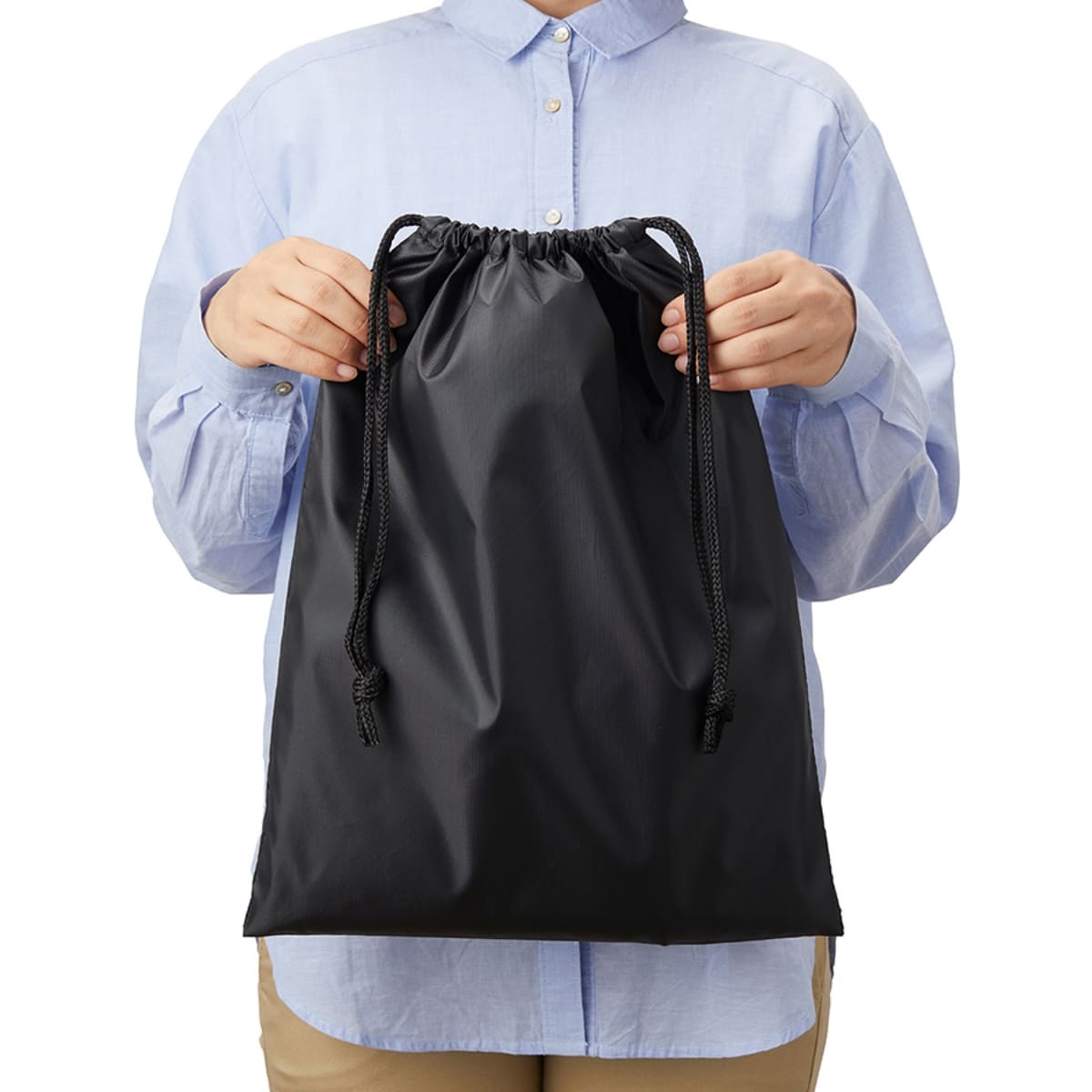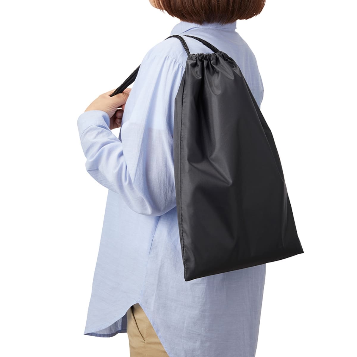 多用途に使えるポリエステル素材の巾着です。A3サイズ程度の大きさなので、旅行の際の小分けバッグとして、部活、サークル課外活動などの洋服入れなどアイデア次第でマルチに活躍します。