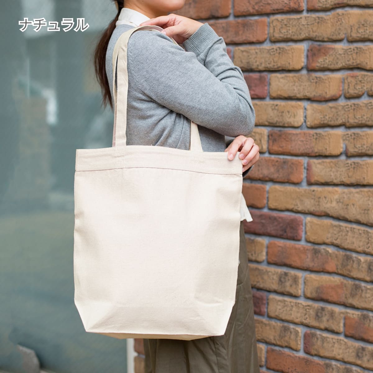 12オンス生地のキャンバストートMよりも横幅と高さが少し大きくデザイン性も備えている為、定番トートとは一味別の提案が出来ます。