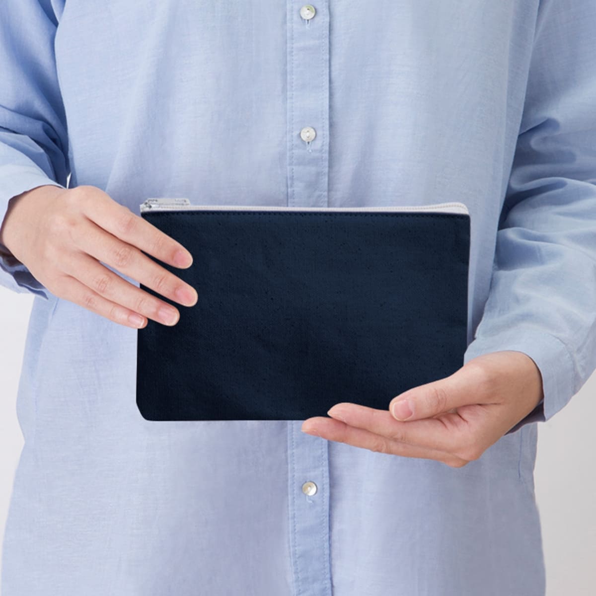 カジュアルなキャンバス生地のポーチです。化粧道具やステーショナリー、カード類の持ち運びにも便利です。