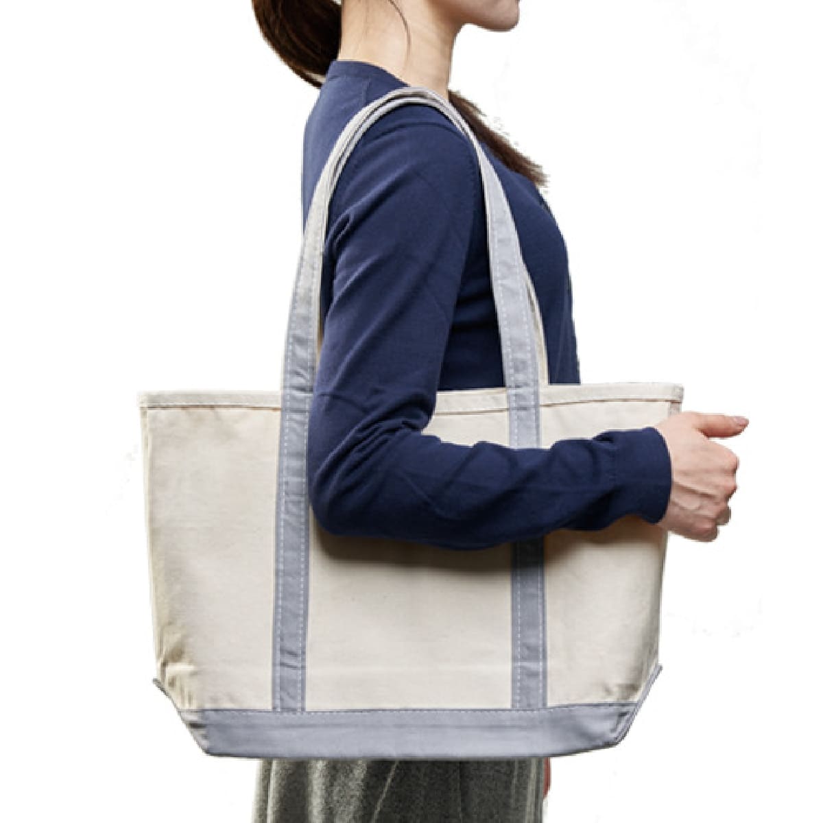 14オンスバッグのシリーズに、ハンドルラインが特徴のバッグが登場しました。しっかりとしたマチがあり、サイドのはぎの重なりを広くすることで自立するなど、使いやすさにこだわったバッグとなっています。また、縫い目の糸番手をを太くすることで縫い目が強調され、デザイン性のあるバッグとなっており、アパレル物販や個人利用など幅広い用途にご利用いただけます。