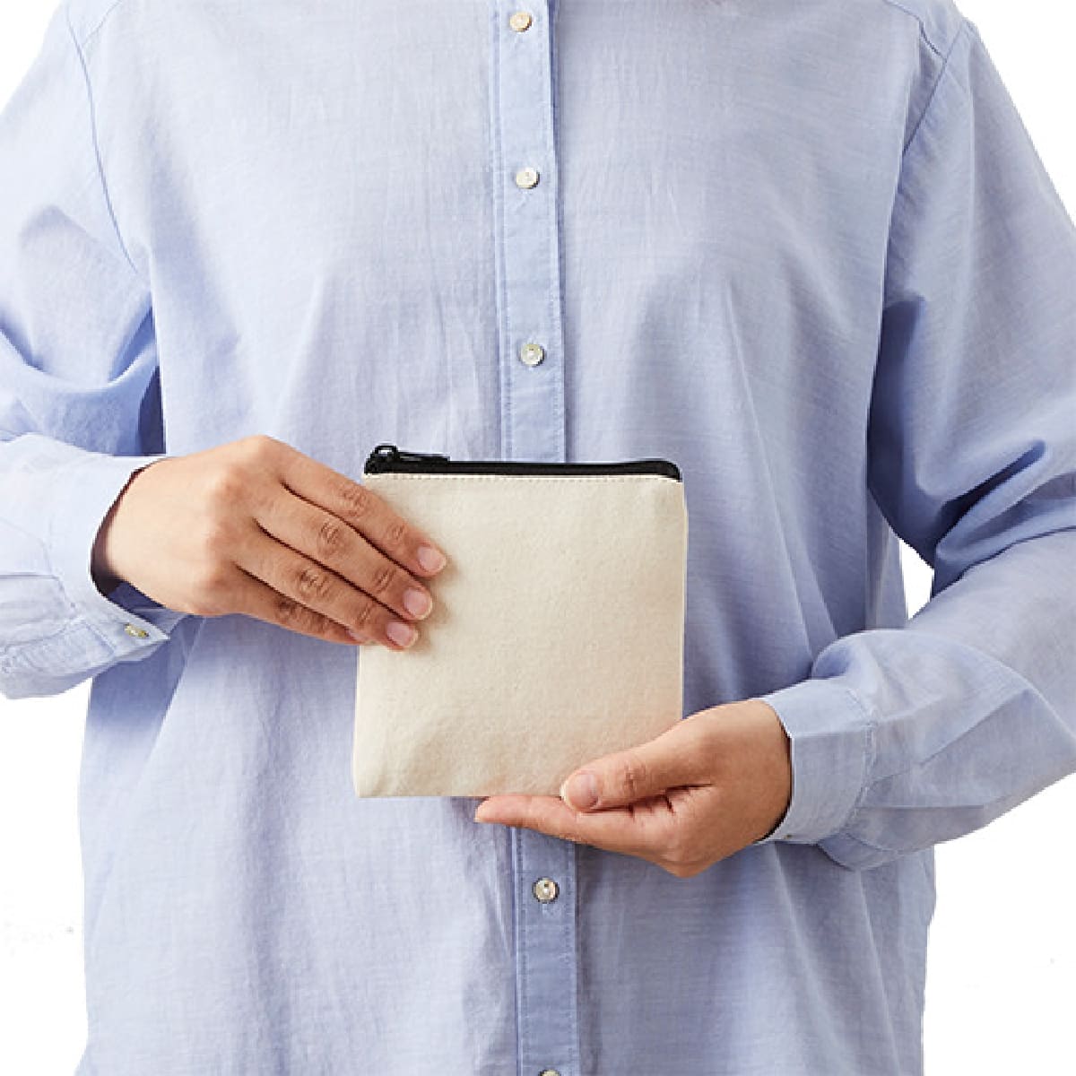 人気のフラットポーチにSSサイズが登場しました。真四角のフォルムをしたキャンバス生地のポーチです。コスメや鍵などの小物入れとして活躍するコンパクトサイズのポーチは、バッグやお菓子とのセット販売もおすすめです。