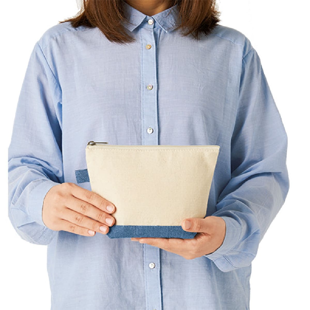 キャンバス デニムボトムデイリーポーチ(S) | ノベルティ(小物) | 1枚 | TR-1059 | ナチュラル×ヴィンテージブルー
