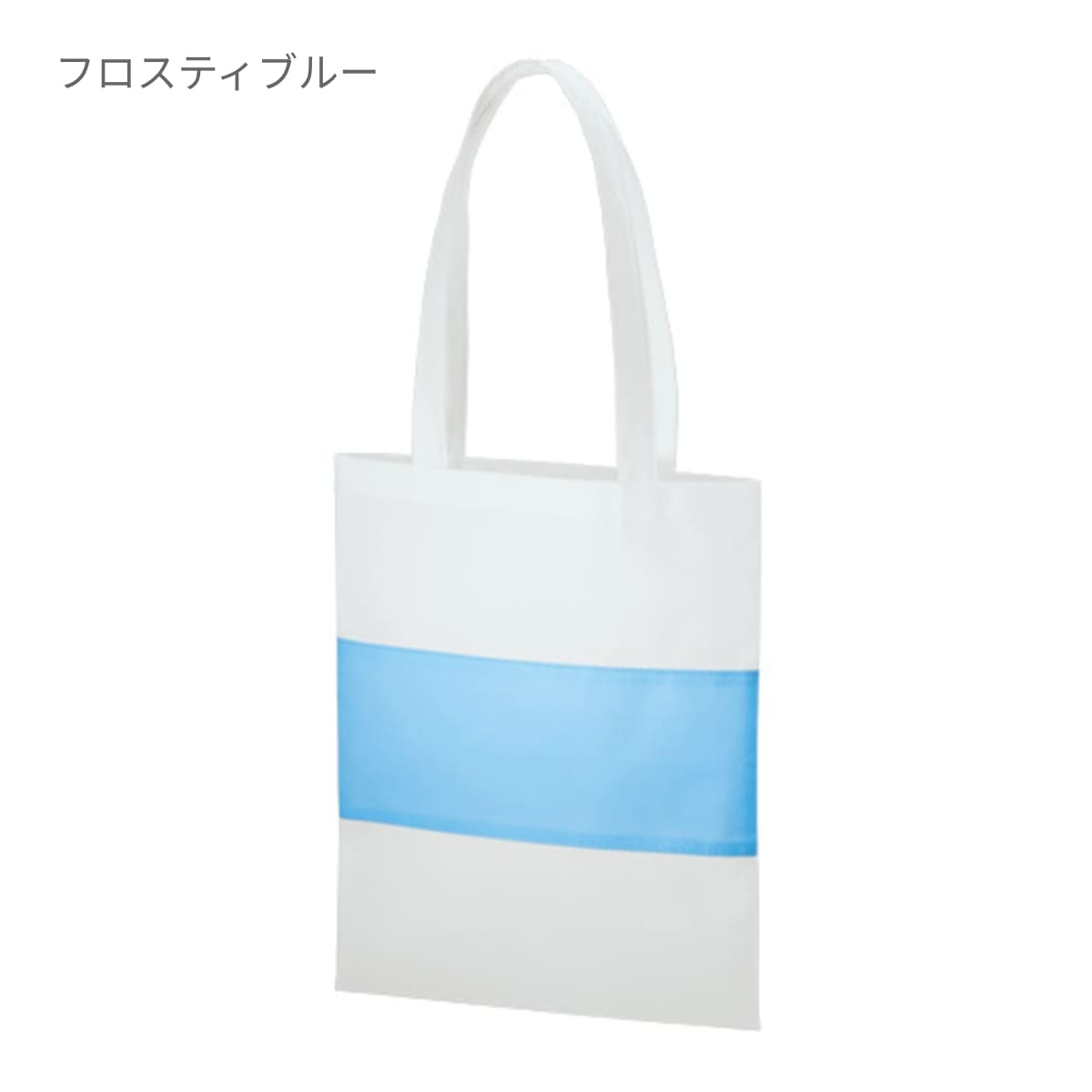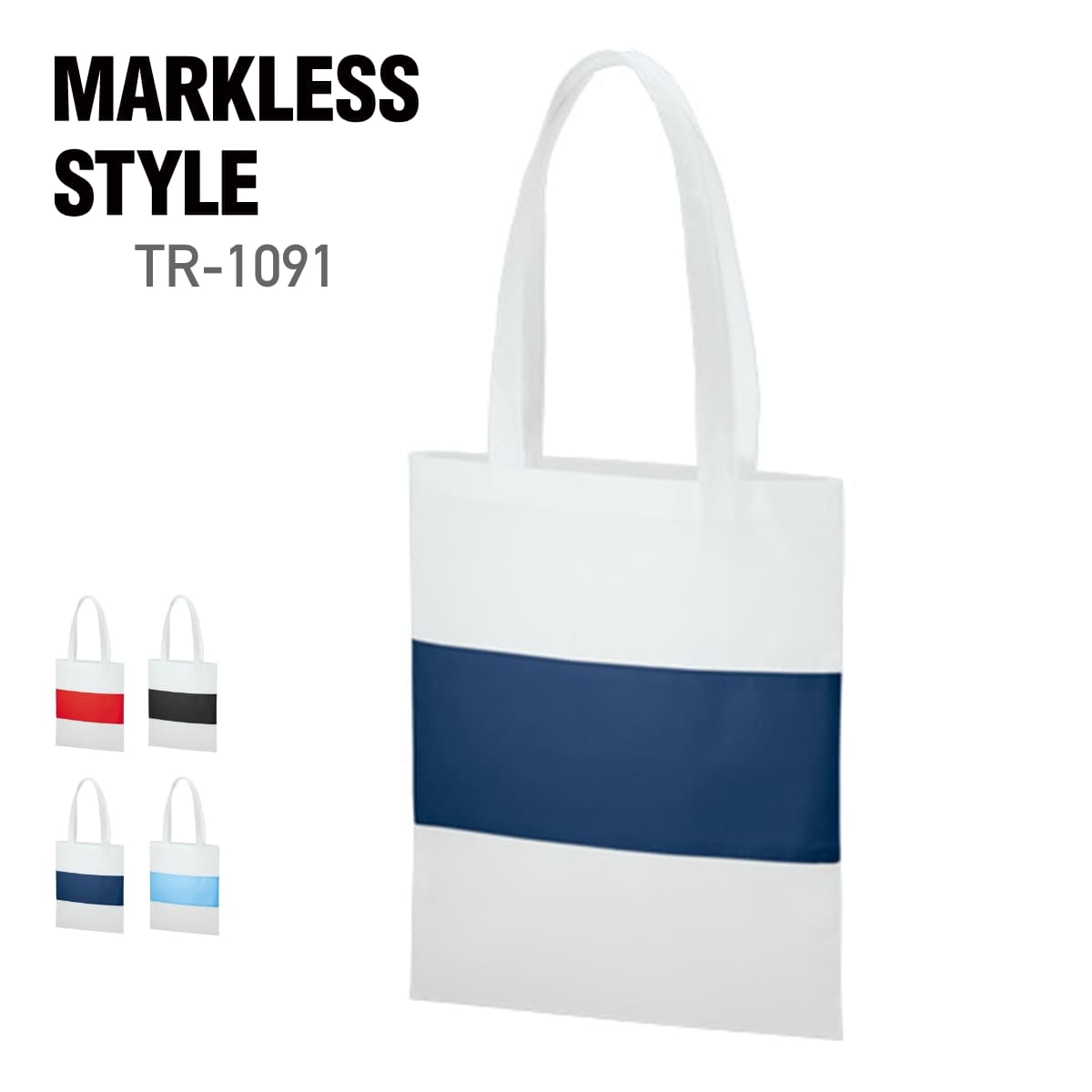 中央にカラーラインが入った、MARKLESS STYLEオリジナル形状の不織布のバッグです。A4サイズの資料が入るフラットタイプとなっており、ボーダーが目を引くデザインとなっております。塾などの教材を入れるバッグやセミナーの資料入れなど、幅広くご提案頂けます。