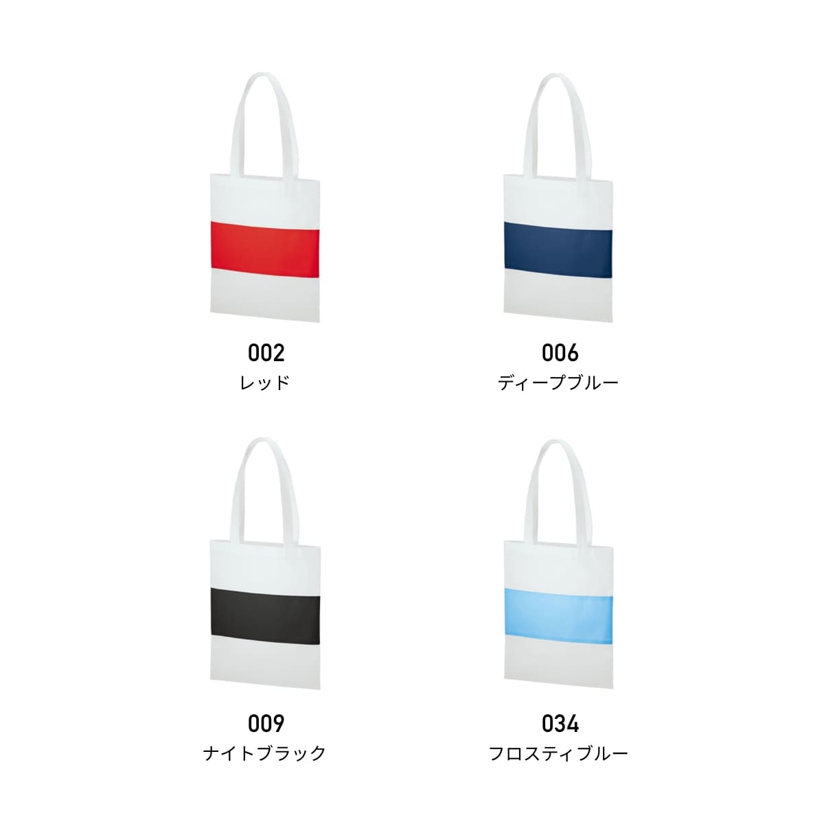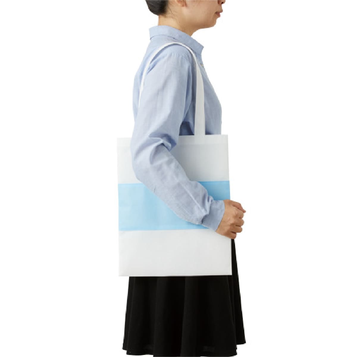 中央にカラーラインが入った、MARKLESS STYLEオリジナル形状の不織布のバッグです。A4サイズの資料が入るフラットタイプとなっており、ボーダーが目を引くデザインとなっております。塾などの教材を入れるバッグやセミナーの資料入れなど、幅広くご提案頂けます。