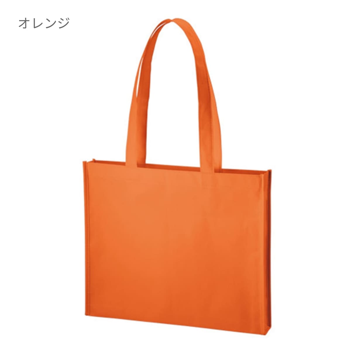 スリムな横型の不織布バッグです。持ちやすいようにサイズは少し小さめにしており、ショルダーを長めにすることで肩からかけやすい仕様になっております。マチのサイズもスリムにしているので、書類を入れるのにも適しています。展示会やオープンキャンパスでの配布用のバッグとしておすすめのアイテムです。