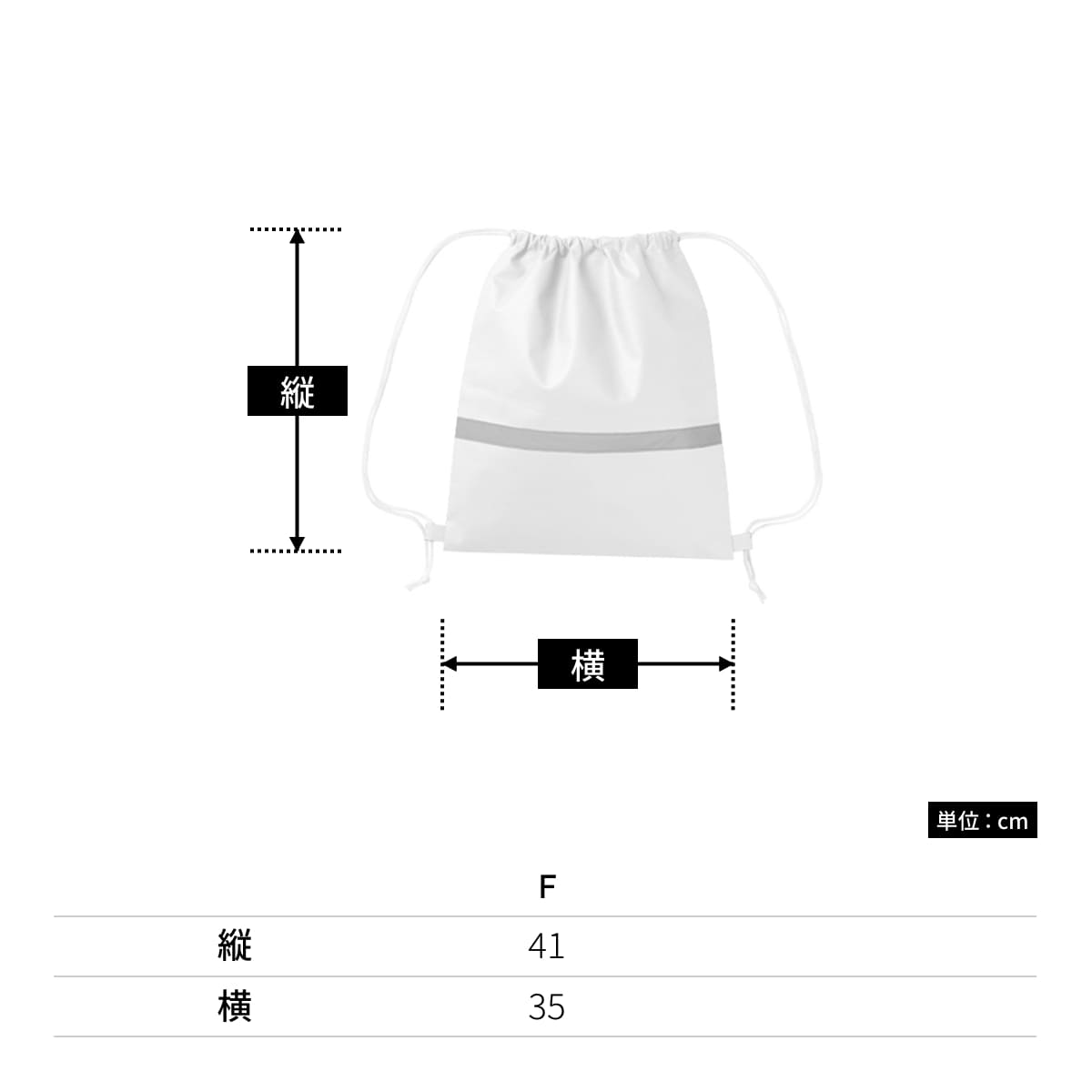 不織布の生地を使用したリフレクター付の巾着リュックです。暗闇で反射するリフレクター付ですので、防災グッズを入れ、非常持ち出し用リュックとしてもご使用頂けます。自治体などで行われる避難訓練をはじめとした防災関連のイベントのノベルティとしてもオススメのアイテムです。