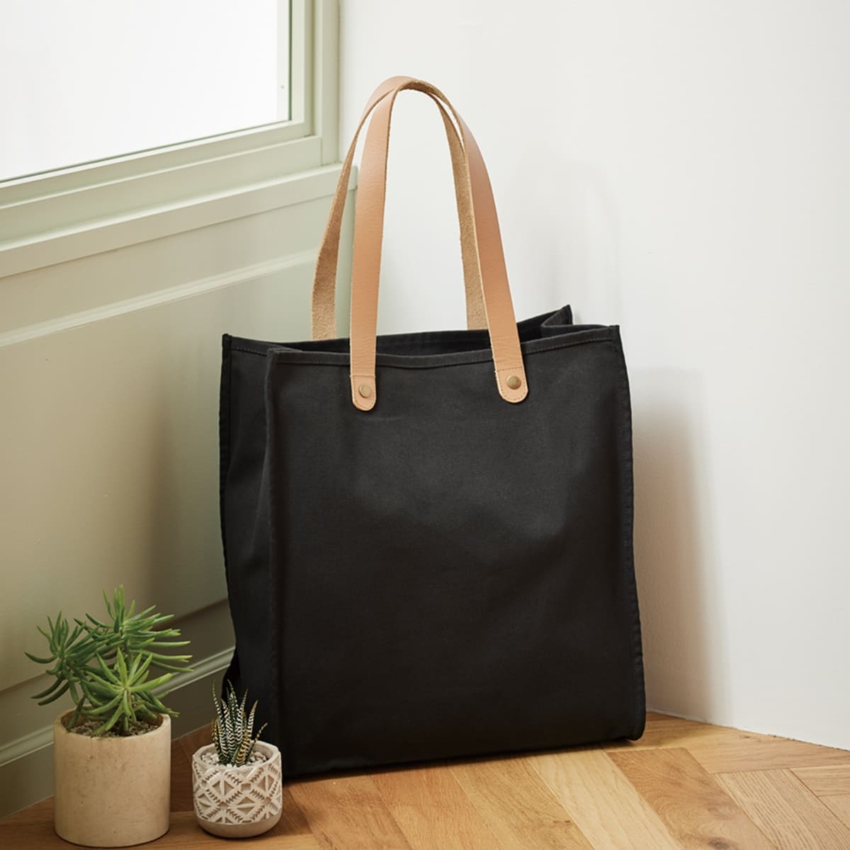 厚手キャンバス レザーハンドルスクエアトート | ノベルティ(小物) | 1枚 | TR-1150 | ナチュラル