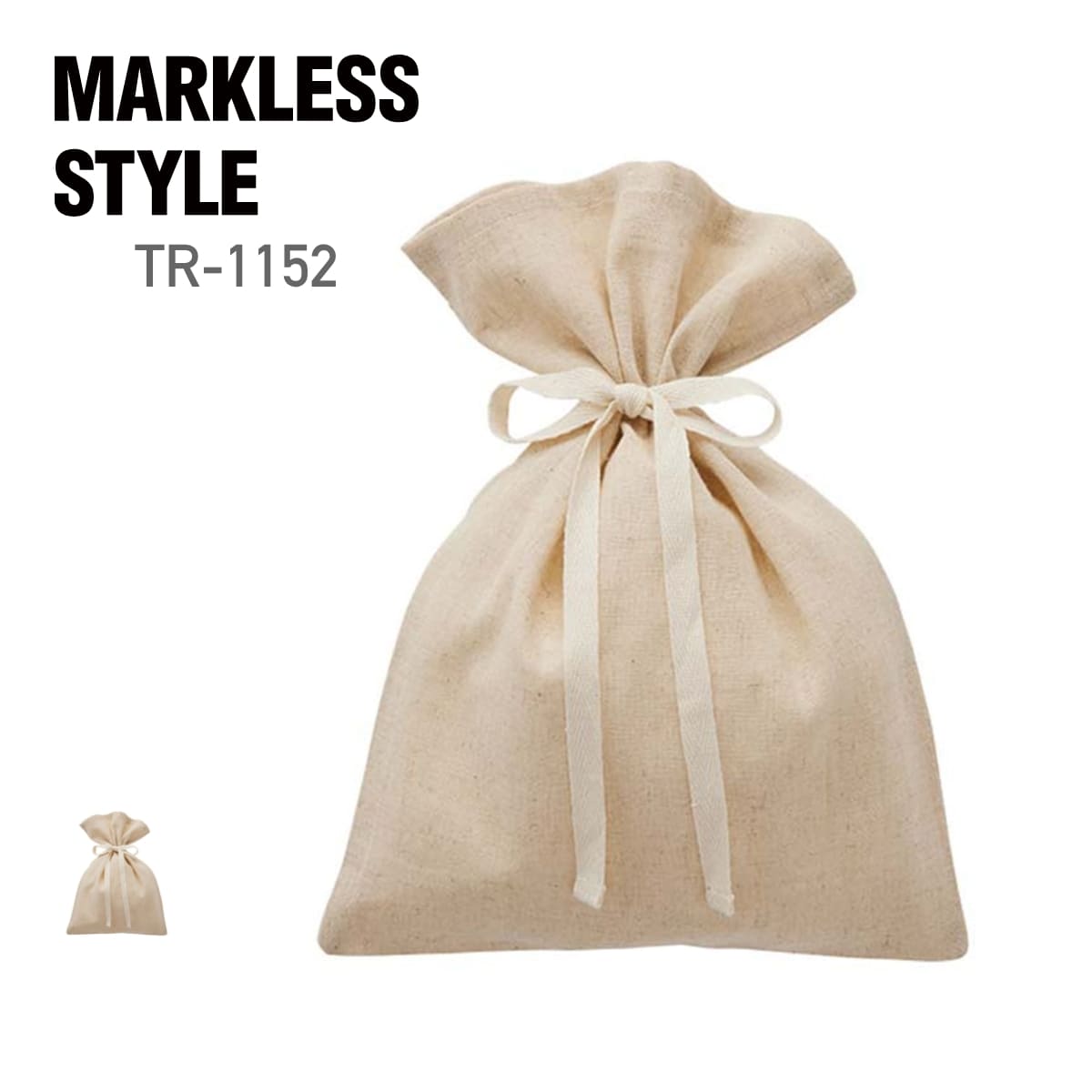 コットンリネン ラッピング巾着(M) | ノベルティ(小物) | 1枚 | TR-1152 | ナチュラルベージュ