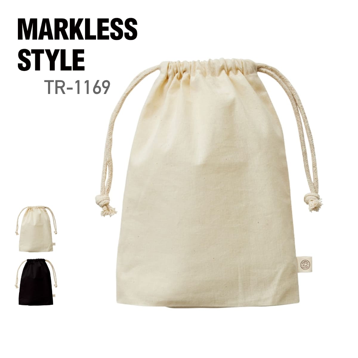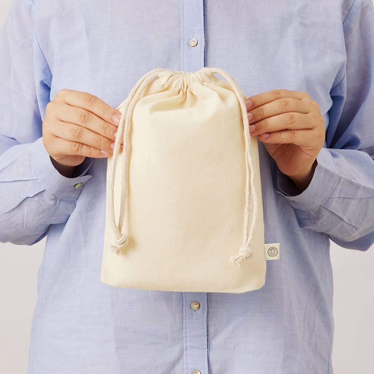 オーガニックコットン ガゼット巾着(M) | ノベルティ(小物) | 1枚 | TR-1169 | ナチュラル