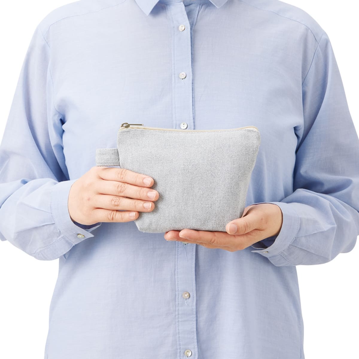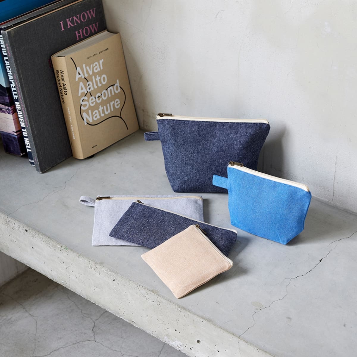 再生素材を使用した、普段使いしやすい舟形タイプのポーチです。