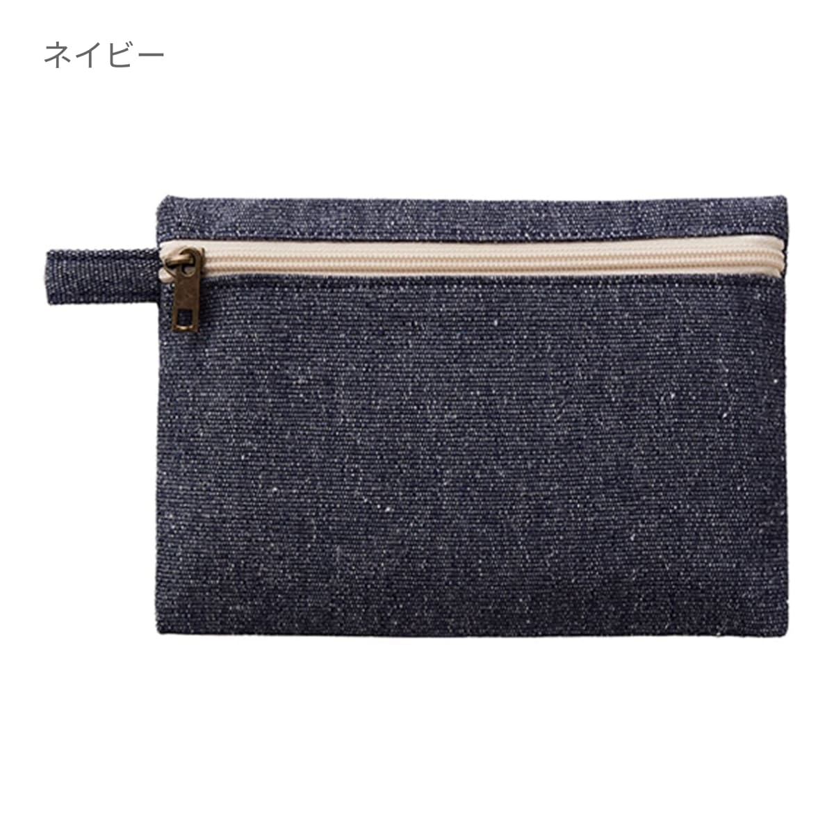 再生素材を使用した、普段使いしやすいフラット形状タイプのポーチです。