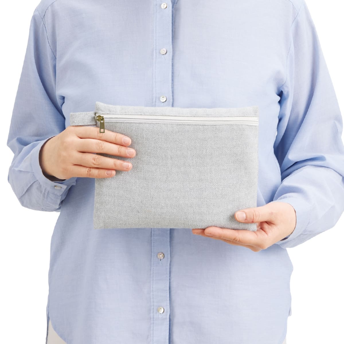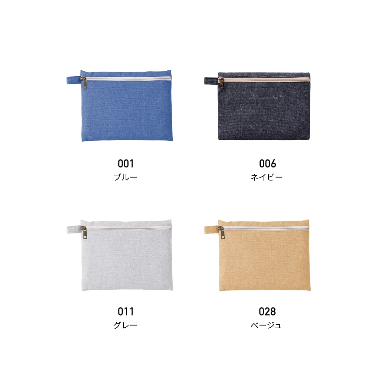 再生素材を使用した、普段使いしやすいフラット形状タイプのポーチです。
