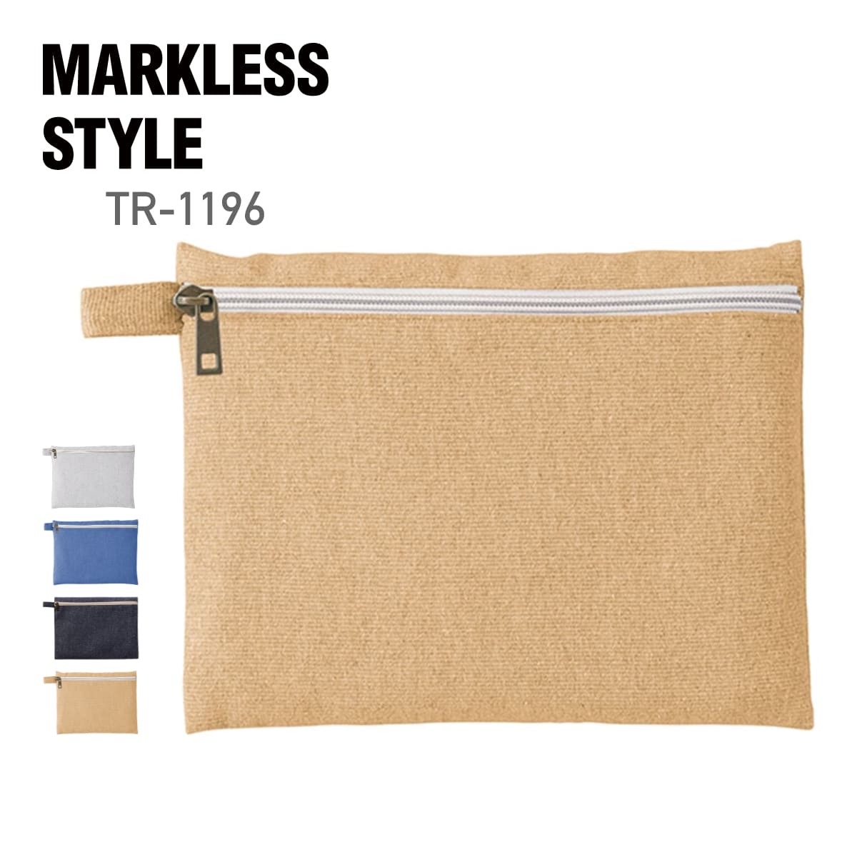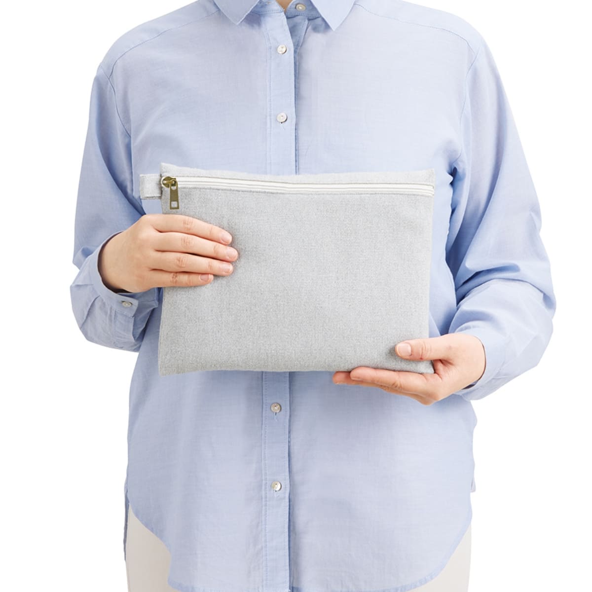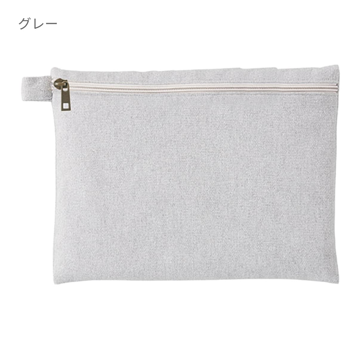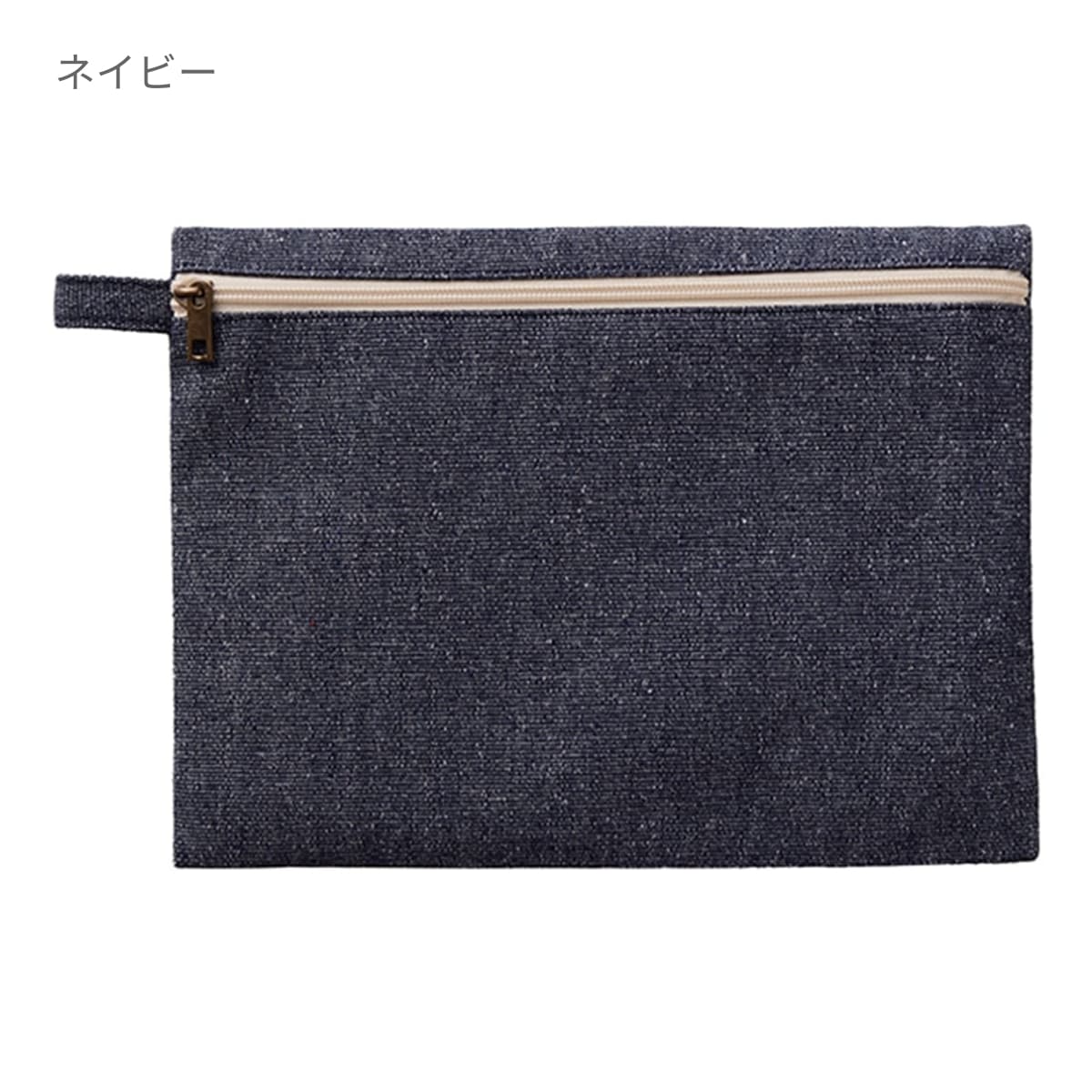 再生素材を使用した、普段使いしやすいフラット形状タイプのポーチです。